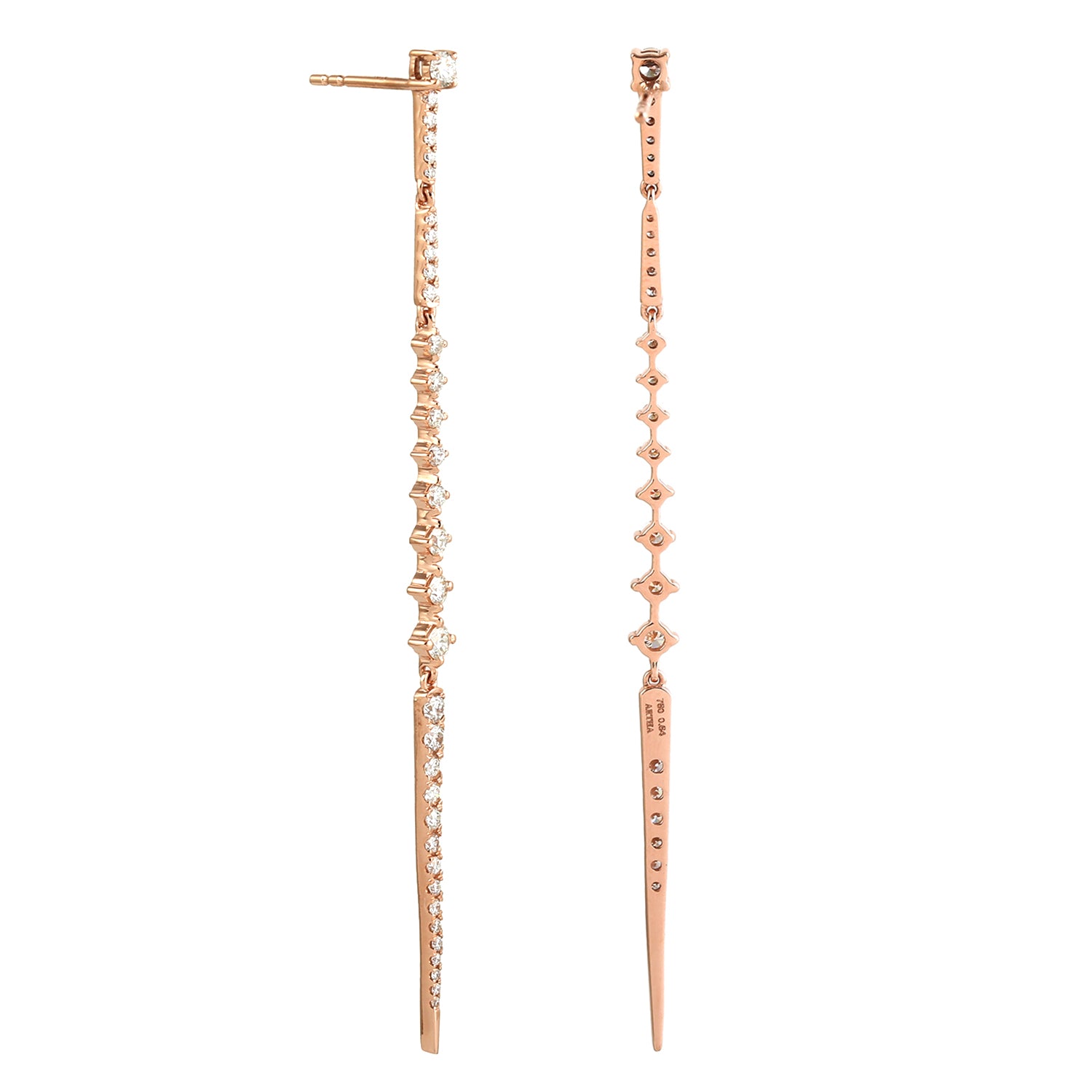 Natural Diamond In 18k Yellow Gold Long Sleek Bar Drop Earrings
