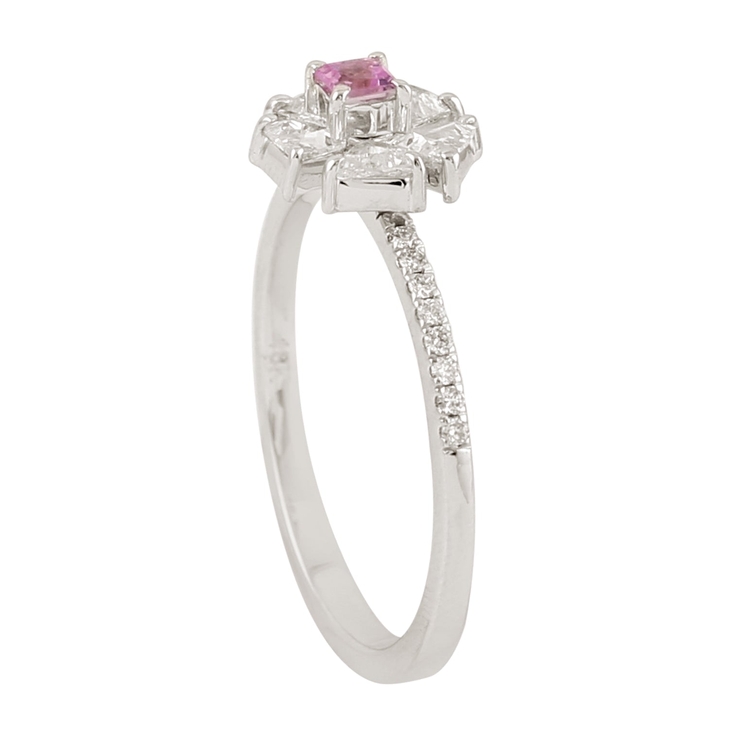 Pink Sapphire Tapered Baguette Diamond Floral Ring In 18k White Gold