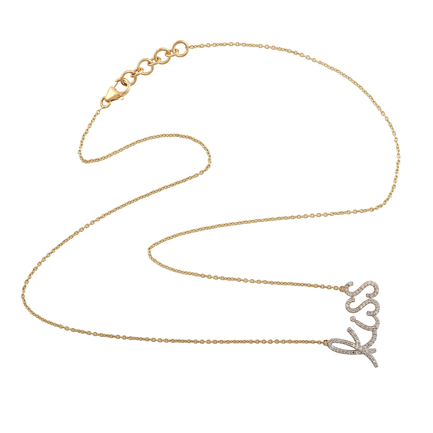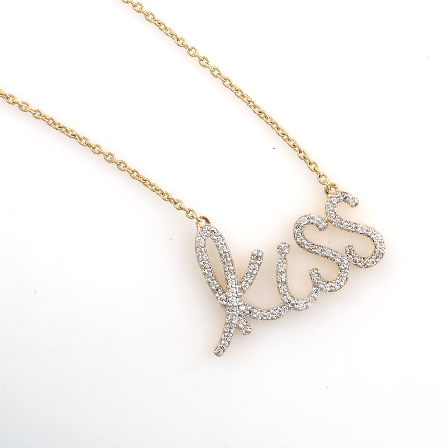 “Kiss” Diamond Initial Necklace with Pave Natural Diamonds in 18K Yellow Gold – Adjustable Choker Length