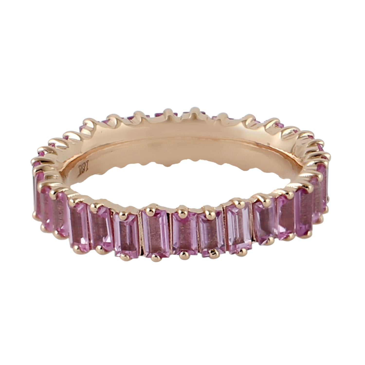 18K Rose Gold Baguette Cut Pink Sapphire Gemstone Full Eternity Band Ring
