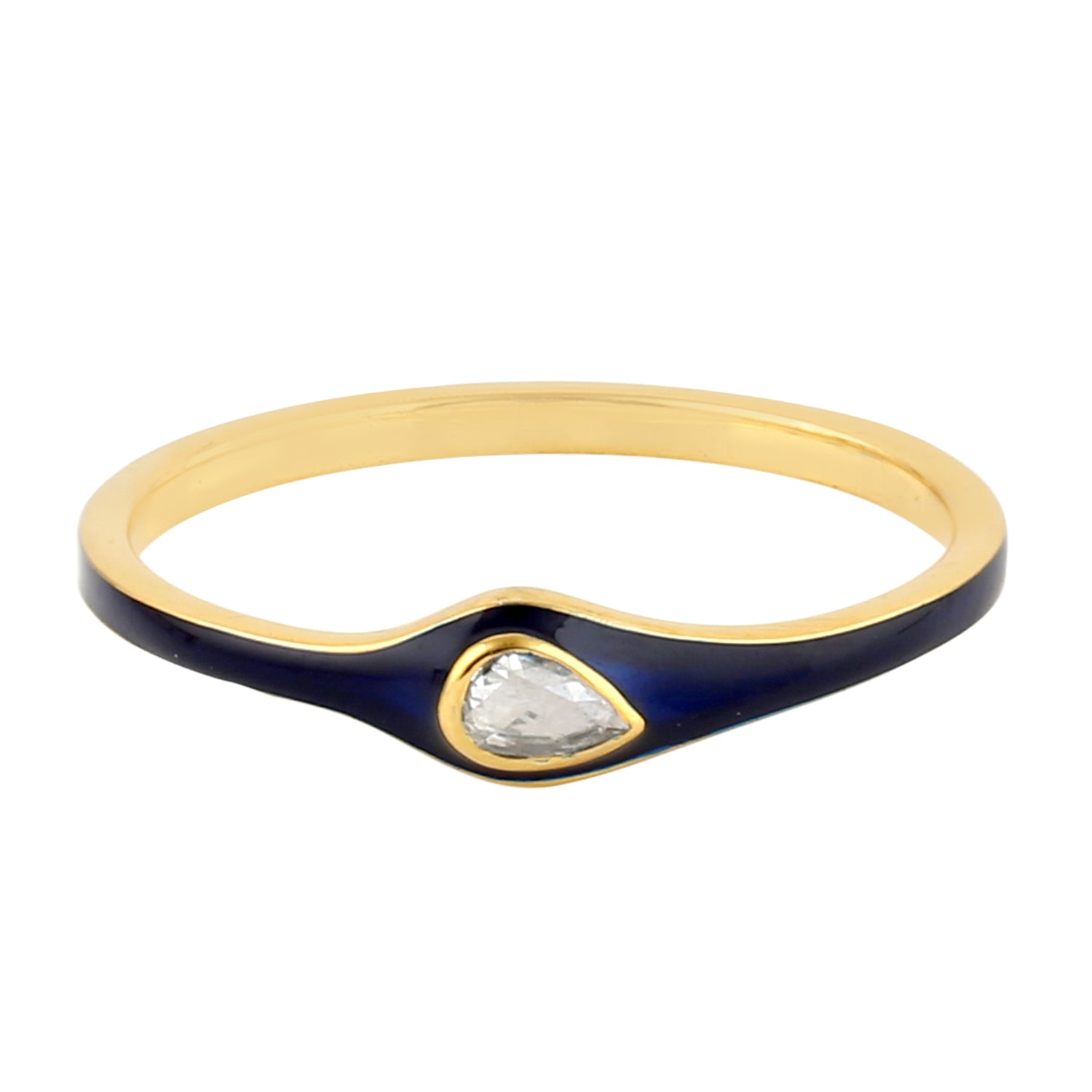 Bezel Rose Cut Diamond Enamel Band Ring In 14K Yellow Gold