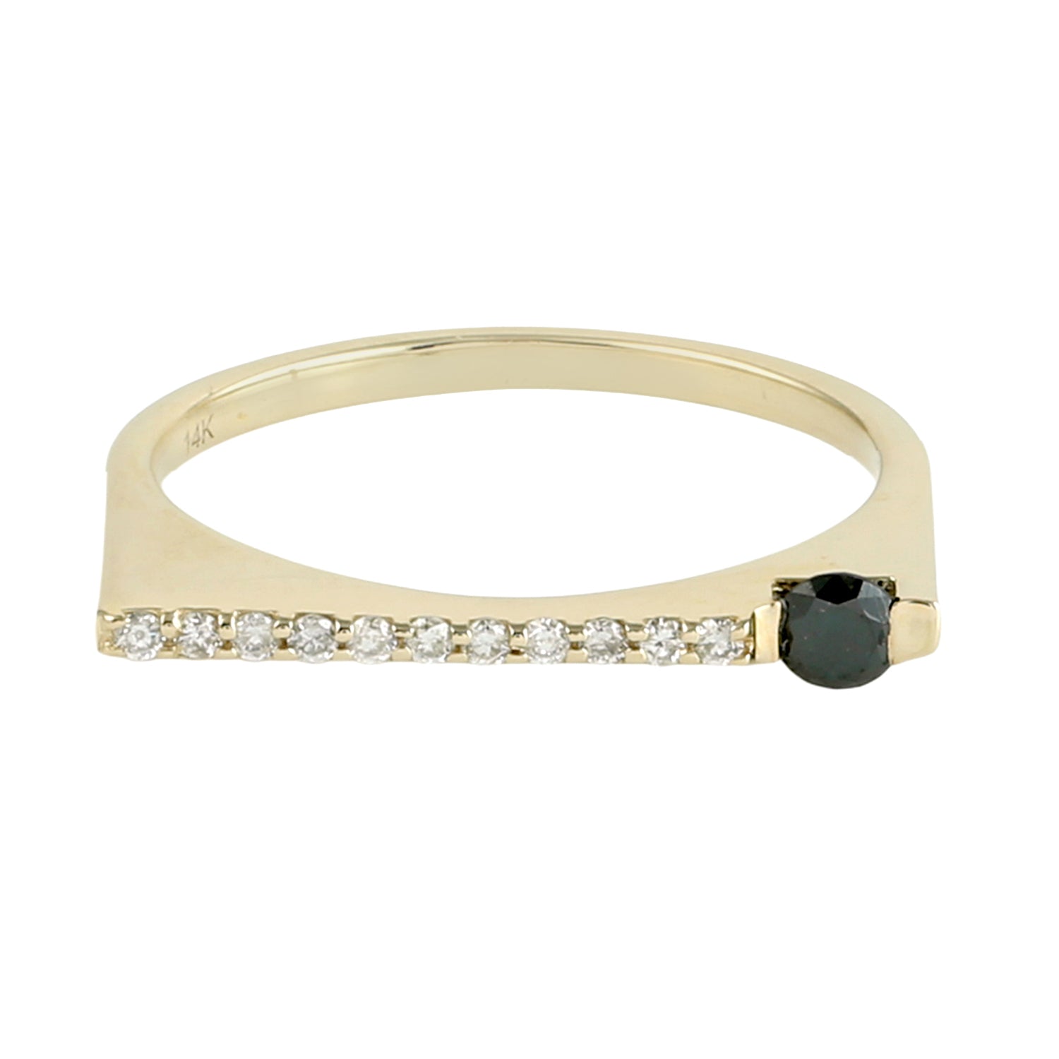 Black & White Diamond Geometric Band Ring in 14K Yellow Gold