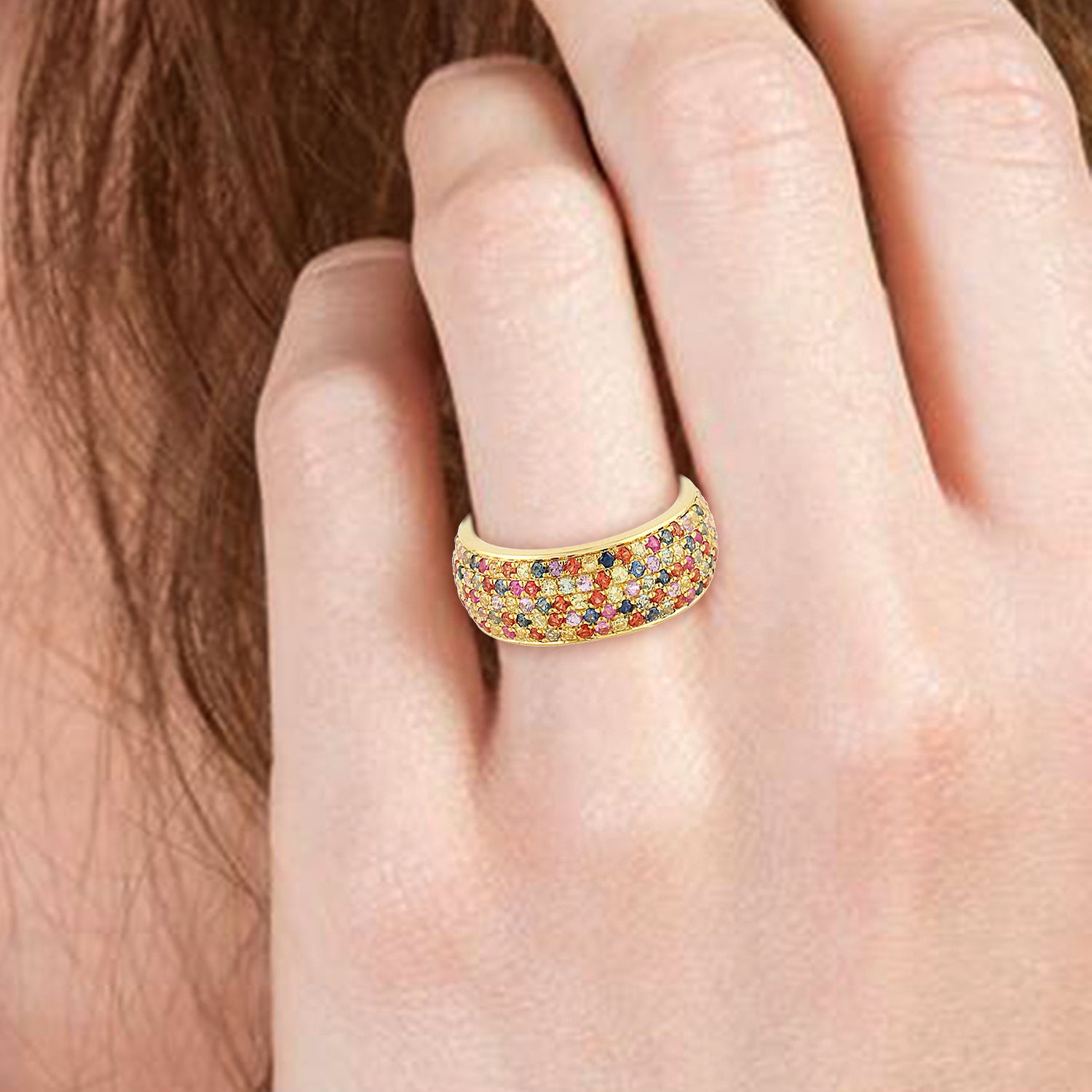 Multi Sapphire Gemstone Wide Designer Band Ring In 18K Yellow Gold