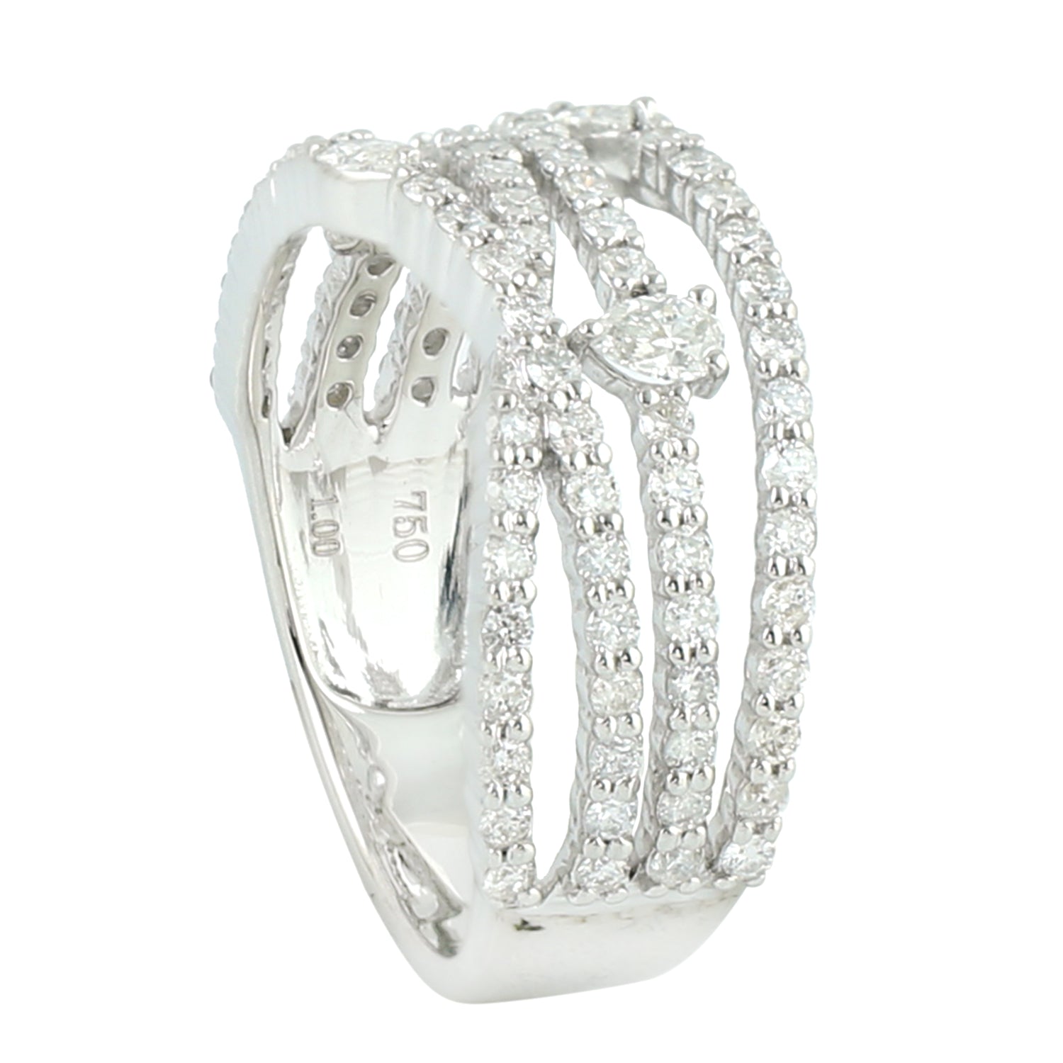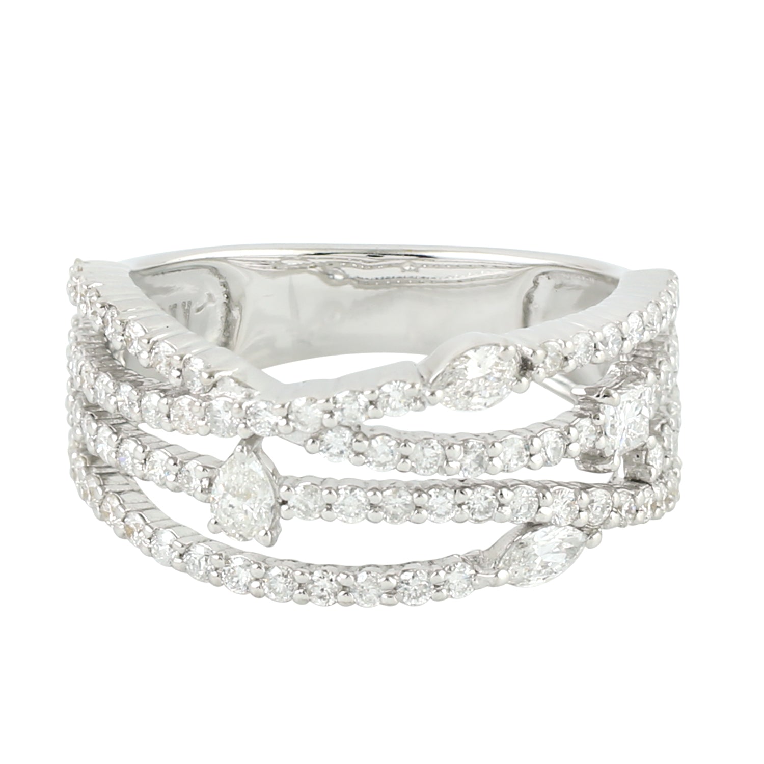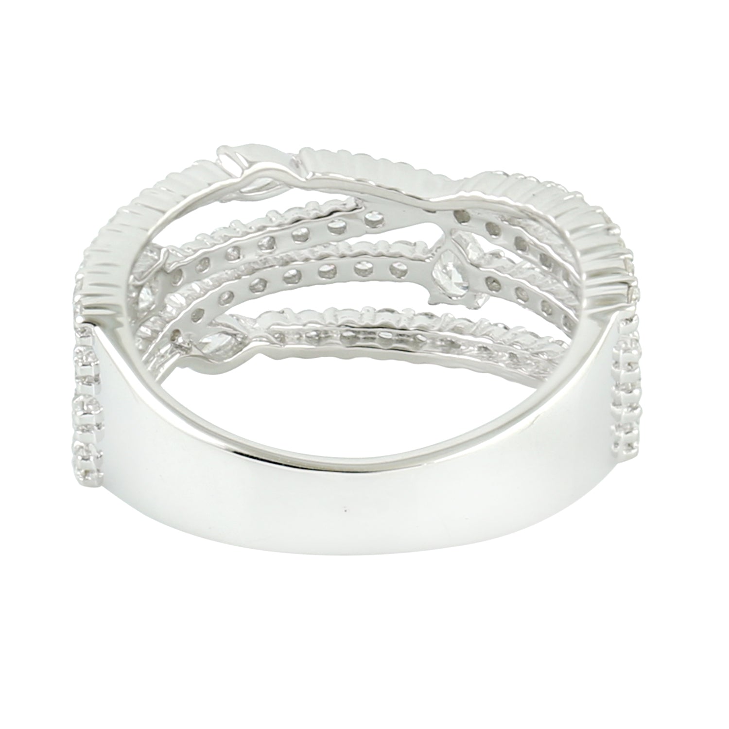 Natural Rose Cut Pave Diamond Designer Band Ring In 18K White Gold