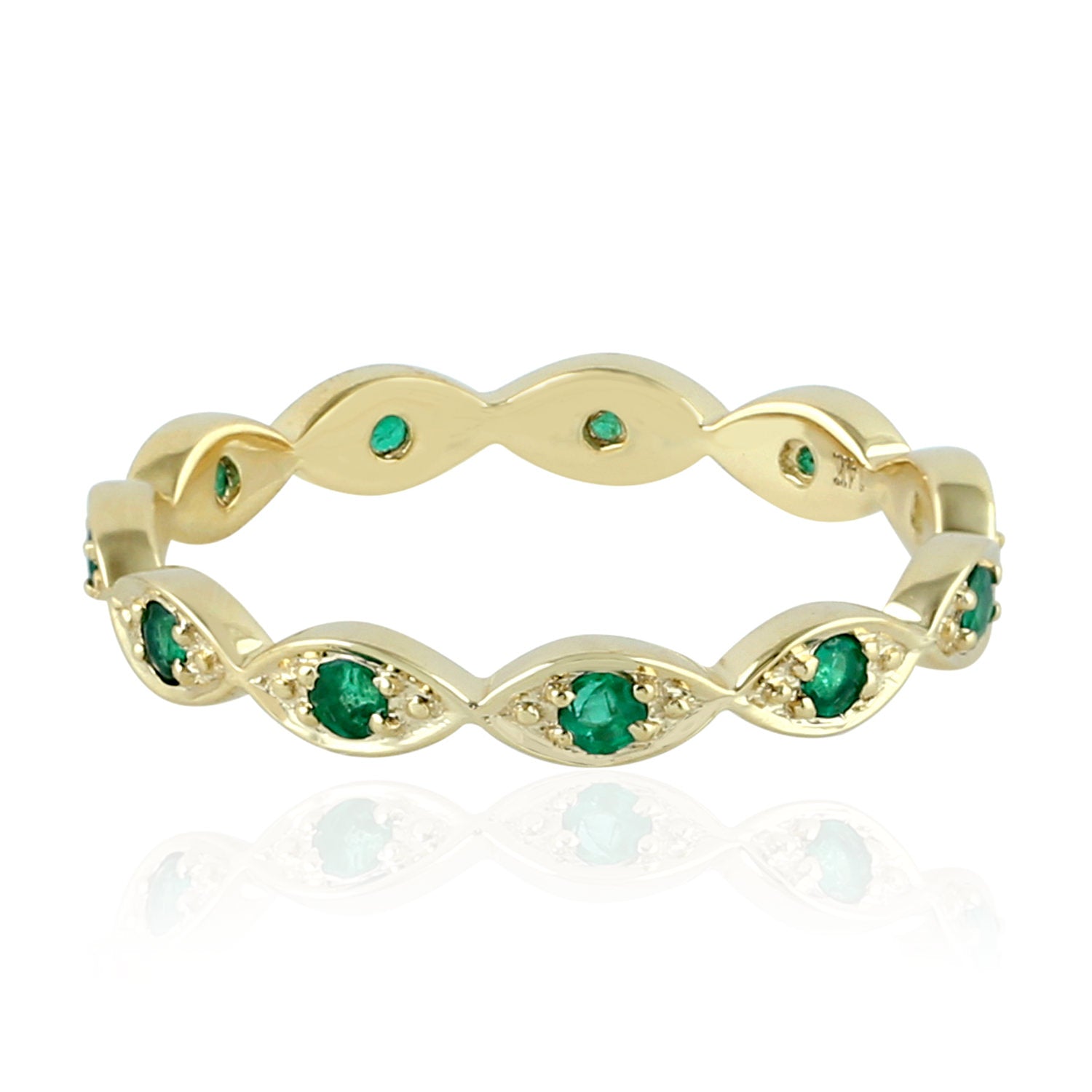 Prong Emerald Gemstone Designer Band Ring In Yellow Gold