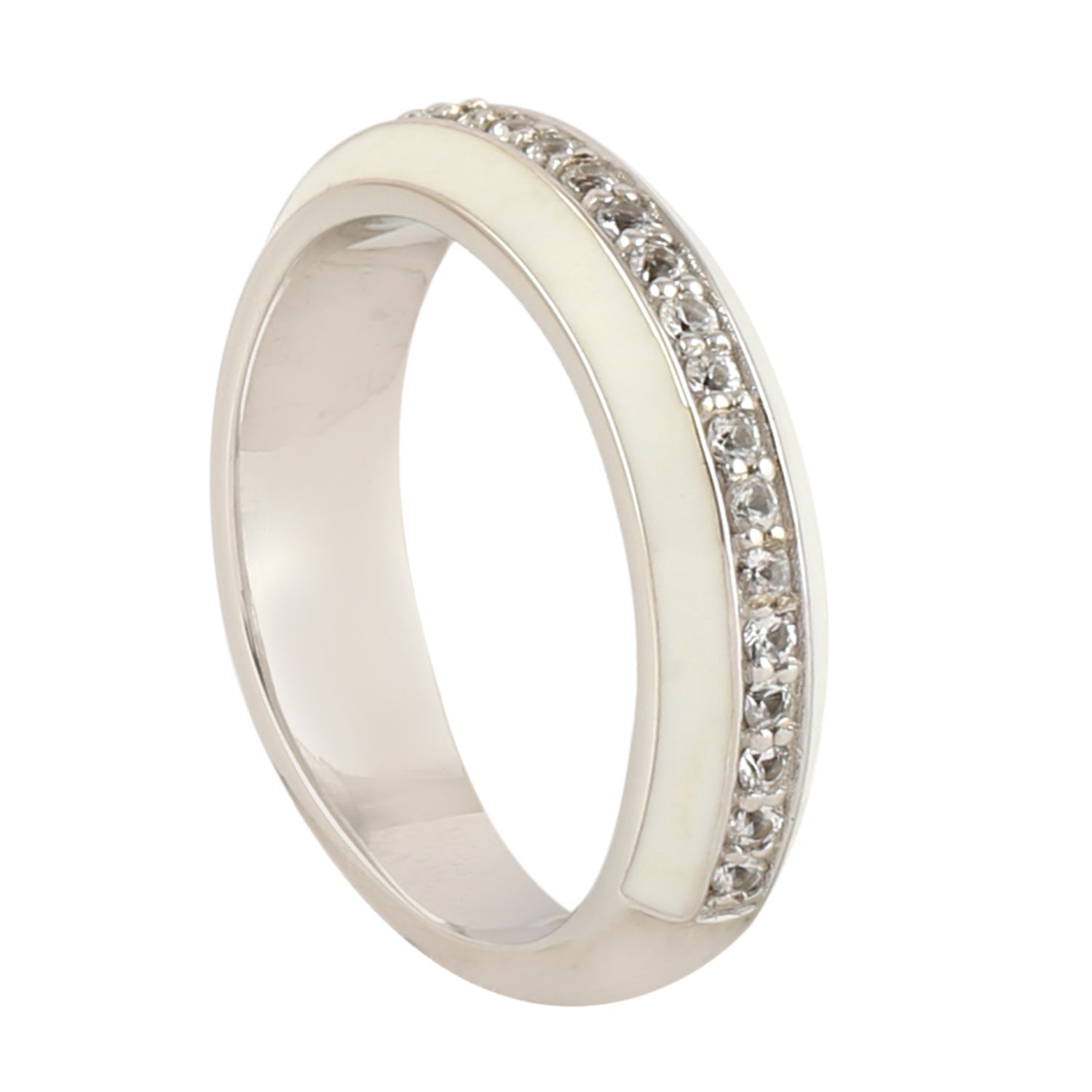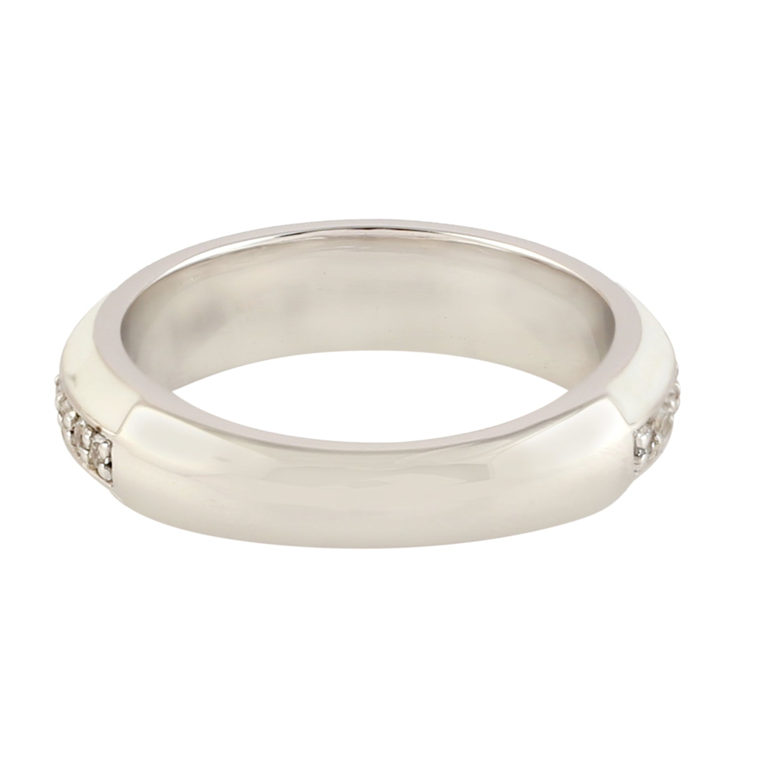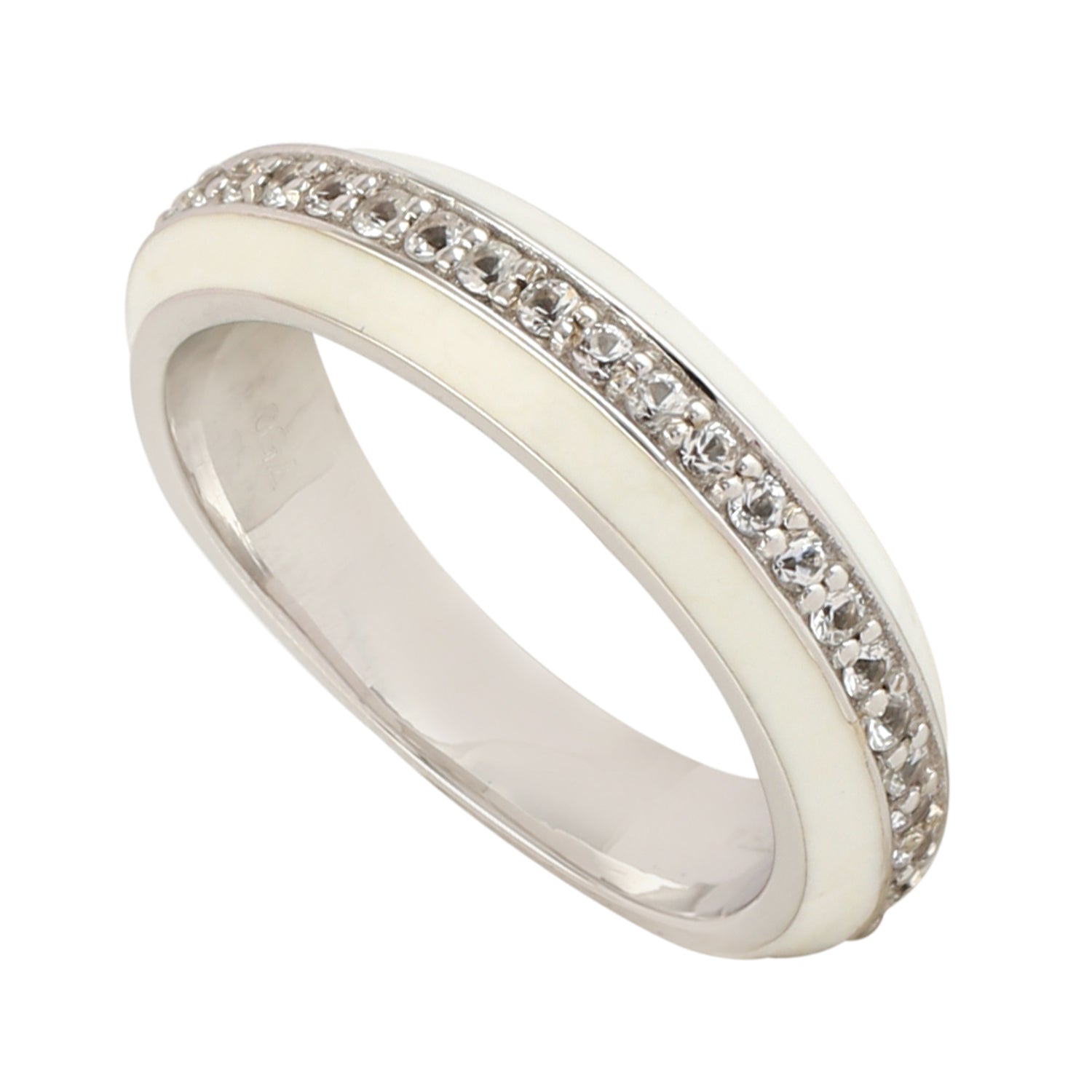 • White Sapphire Enamel Band Ring In 18k White Gold