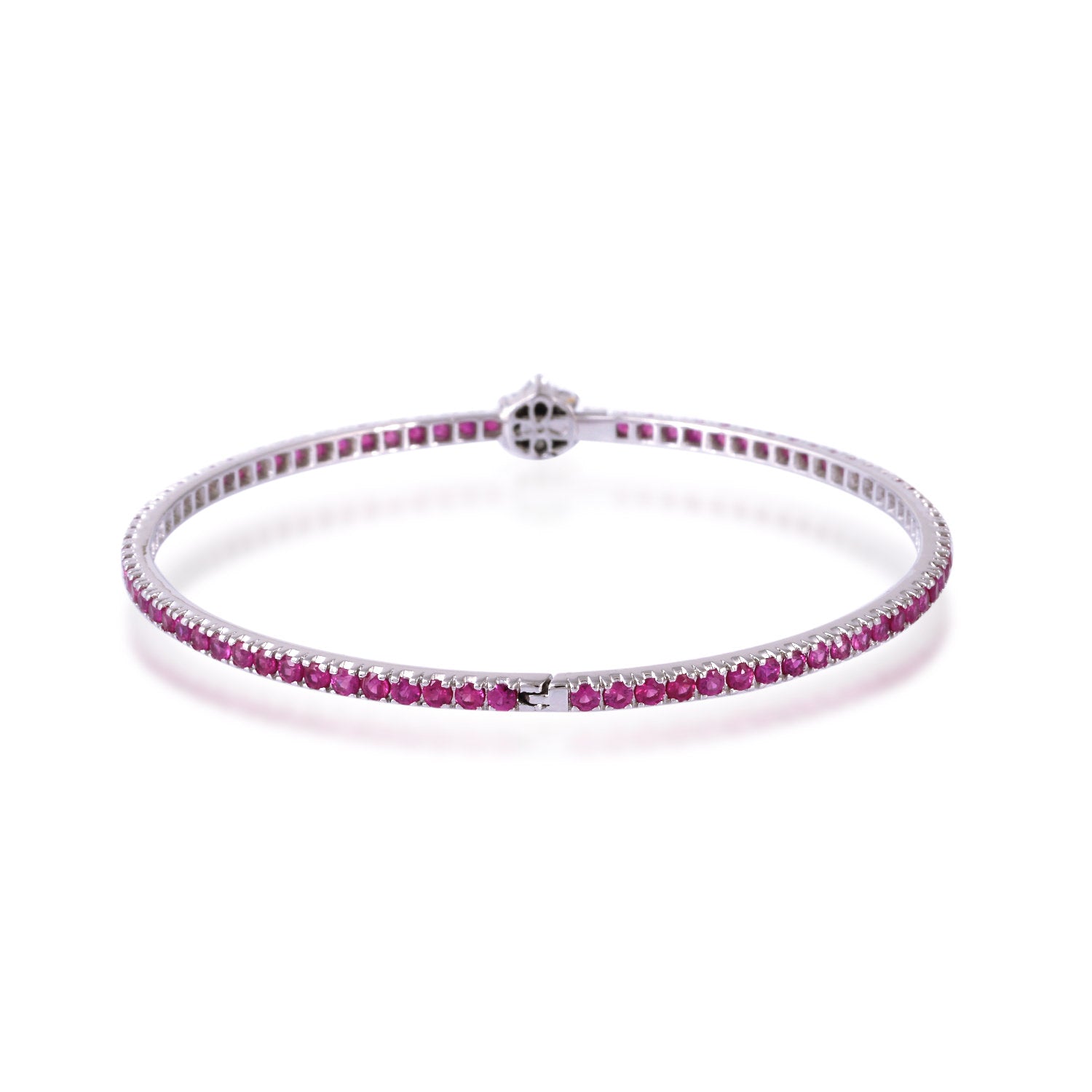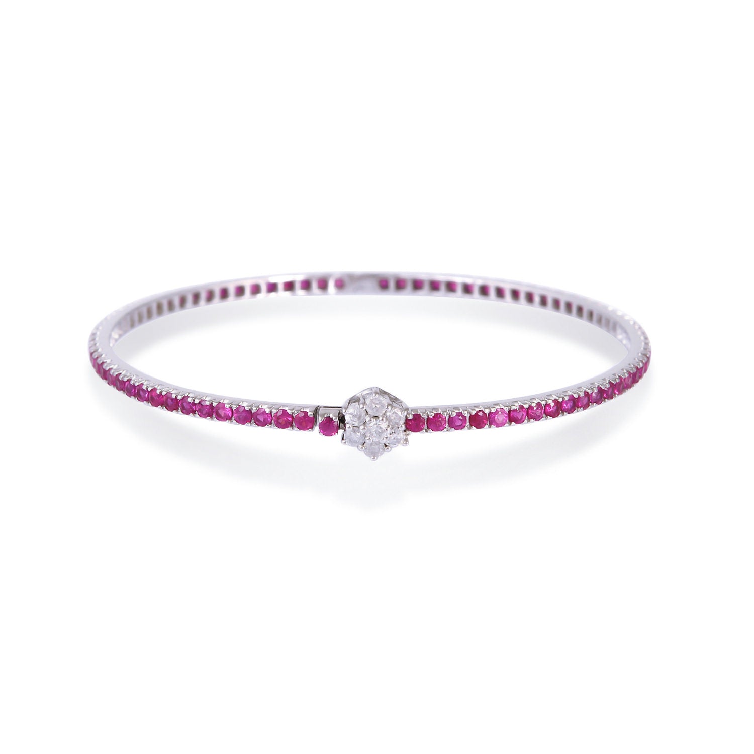 14K White Gold Ruby Bangle with Diamond Center Elegant Minimal Design