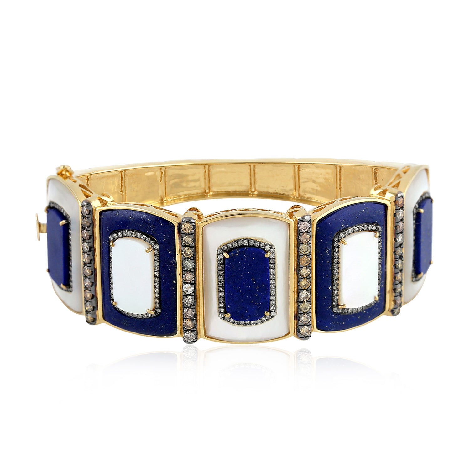 Lapis Lazuli & Mother of Pearl Diamond Accent Link Bracelet in 18K Yellow Gold Silver