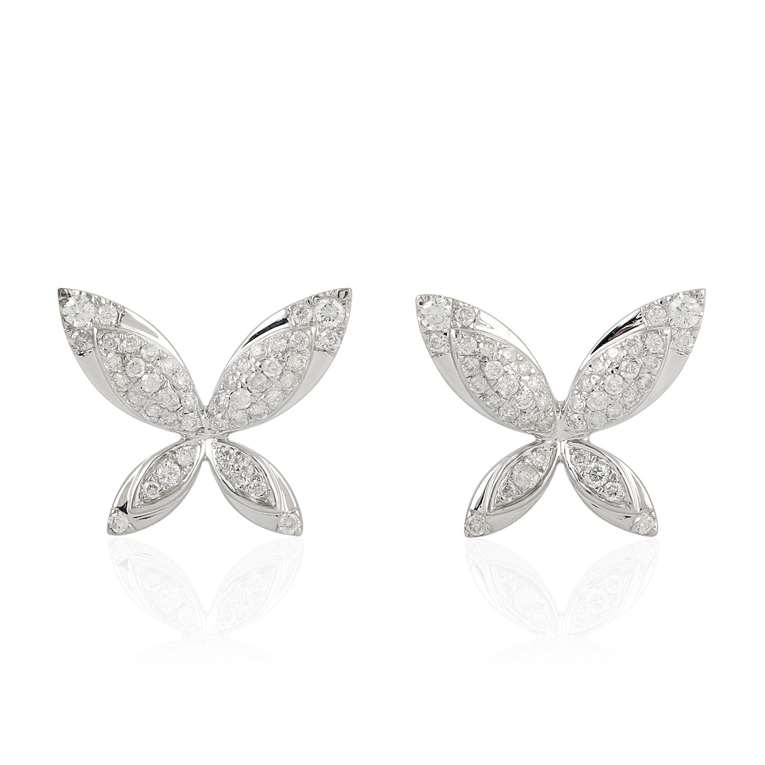 Micro Pave Diamond Butterfly Stud Earrings In 14K White Gold