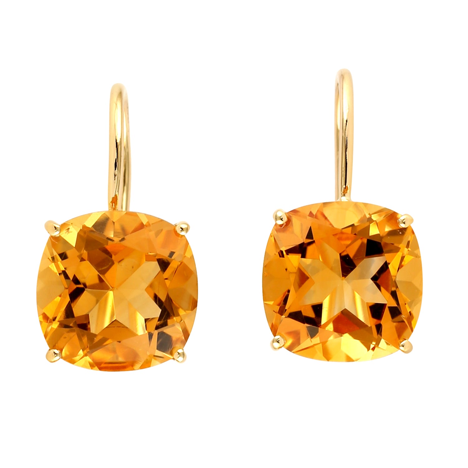Cushion Citrine November Birthstone Ear Hook Earrings In 14K Yellow Gold