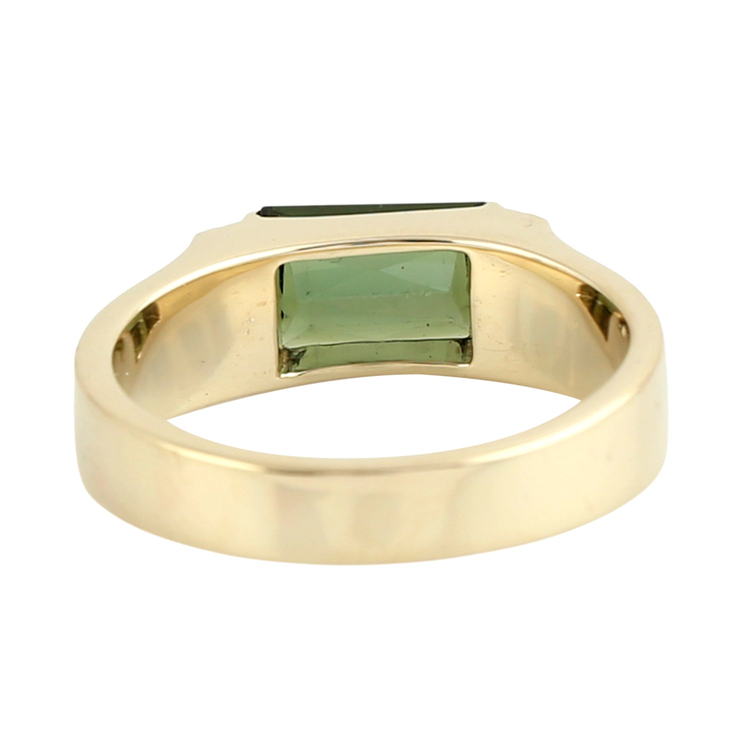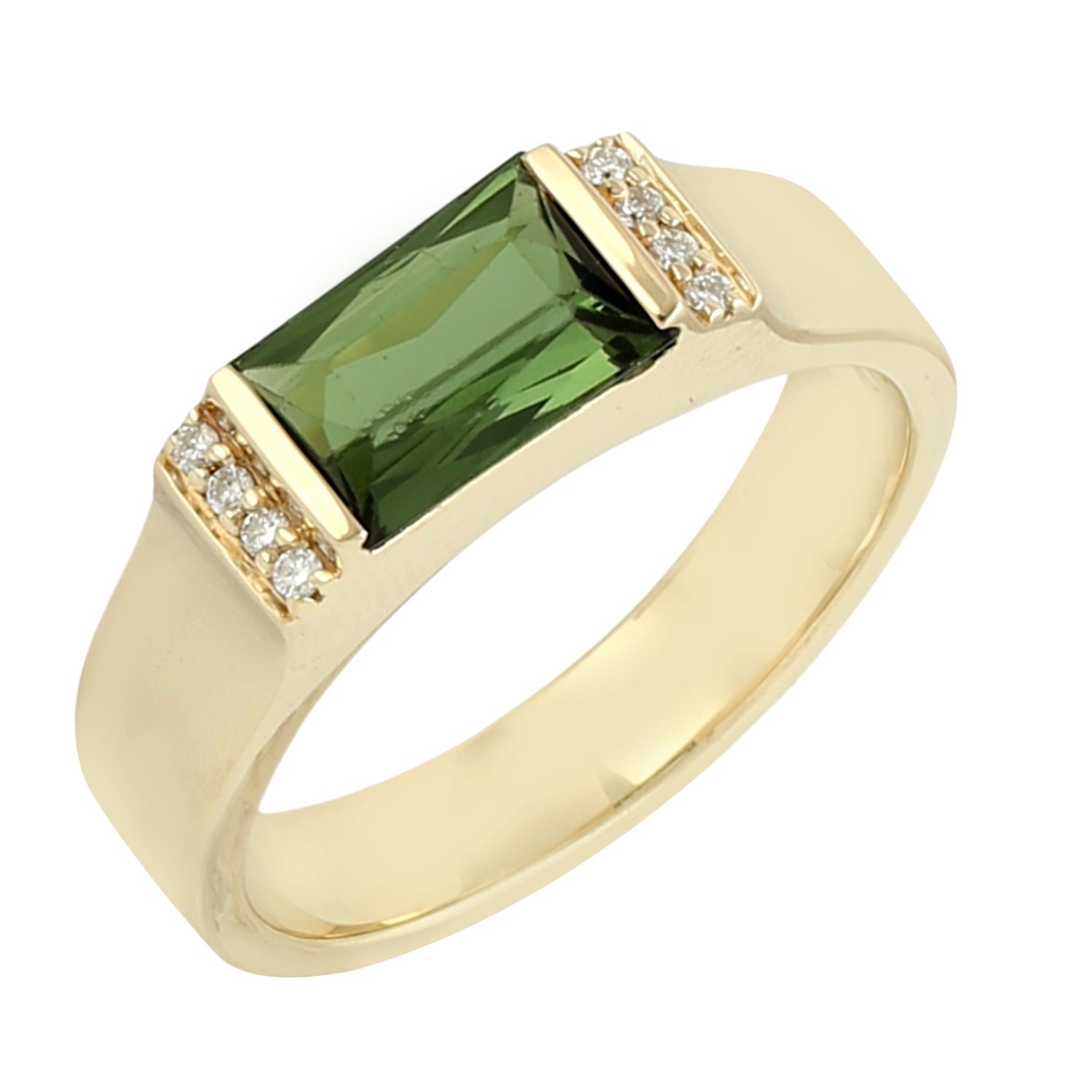 Green Tourmaline October Birthstone Pave Diamond Band Ring In 14K Yellow Gold
