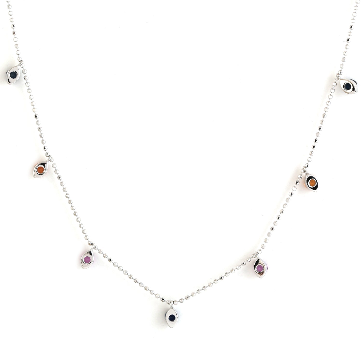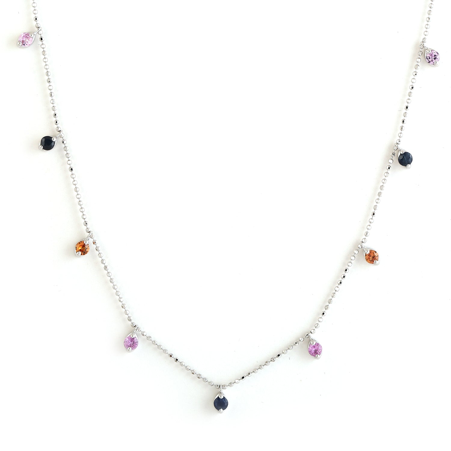 Rainbow Sapphire Birthstone Station Chain Necklace Dainty In 18k White Gold