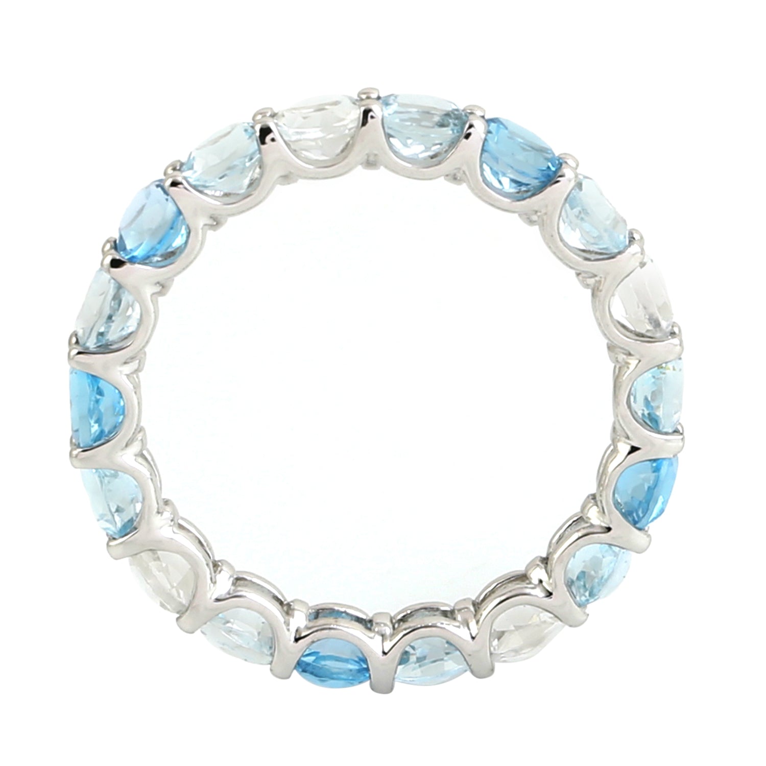 Blue Topaz November Birthstone Full Eternity Band Ring in 18k White Gold