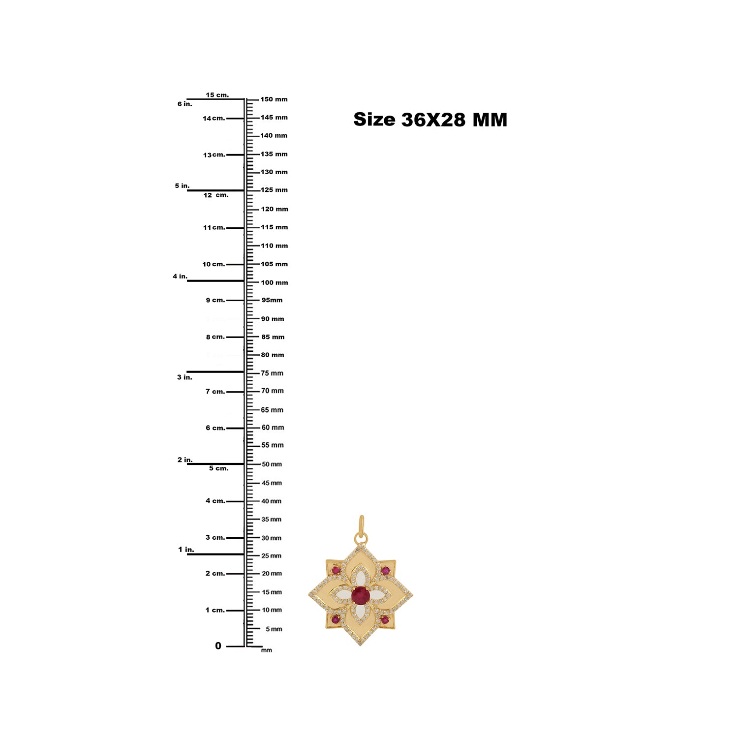 Ruby July Birthstone Pave Diamond Floral Pendant In 14k Yellow Gold