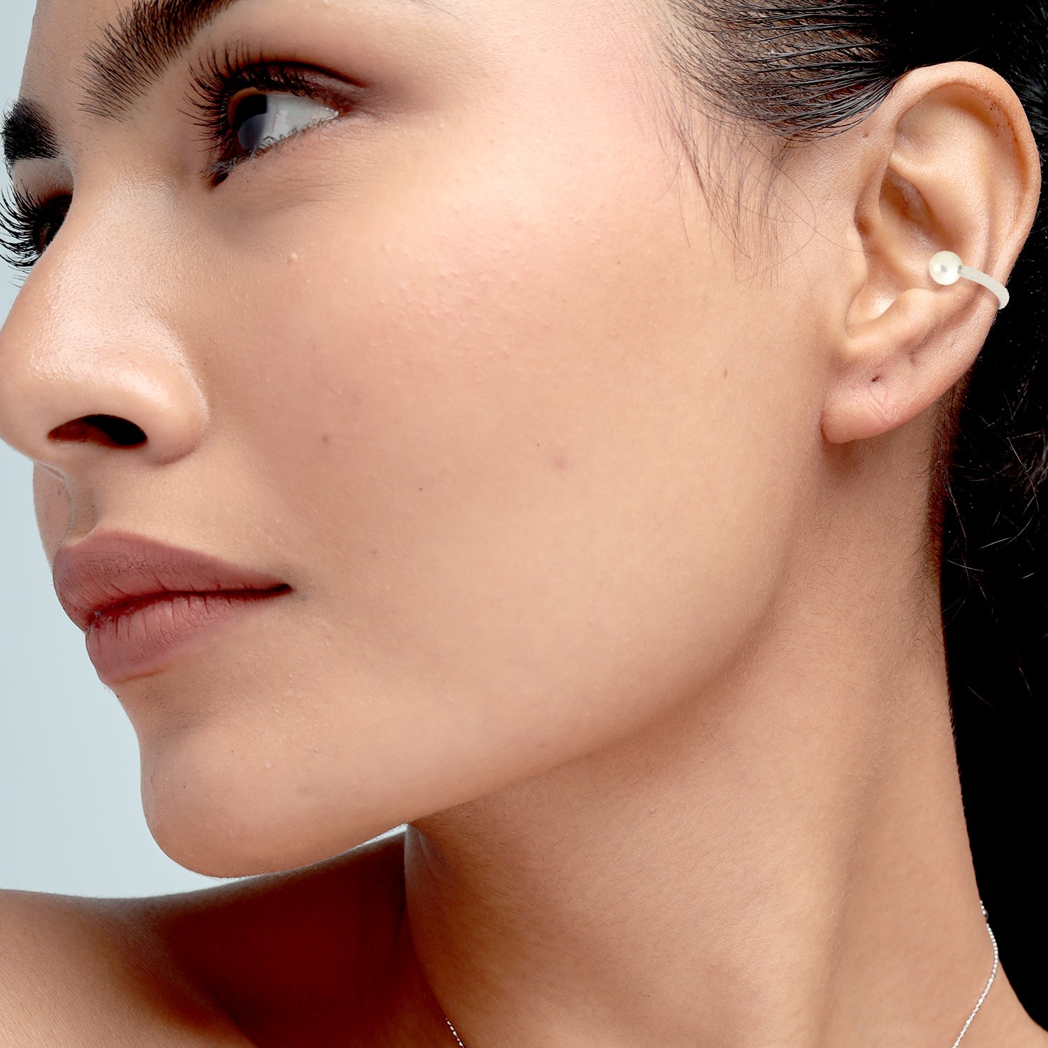 • Pearl June Birthstone Bead In 14k White Gold Ear Cuff Earrings Minimal Gift