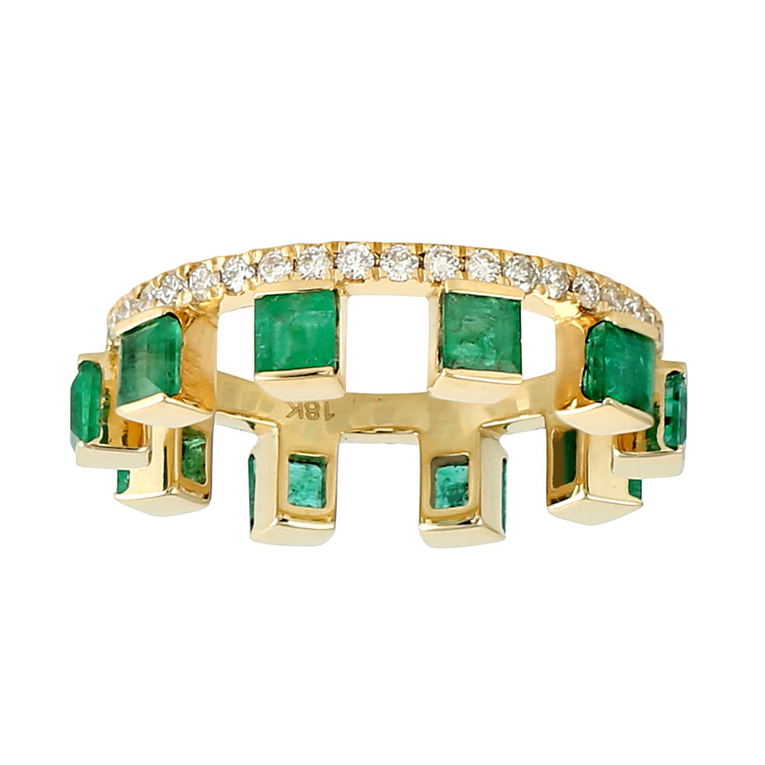 Square Cut Emerald May Birthstone Pave Diamond Tiara Band Ring In Gold