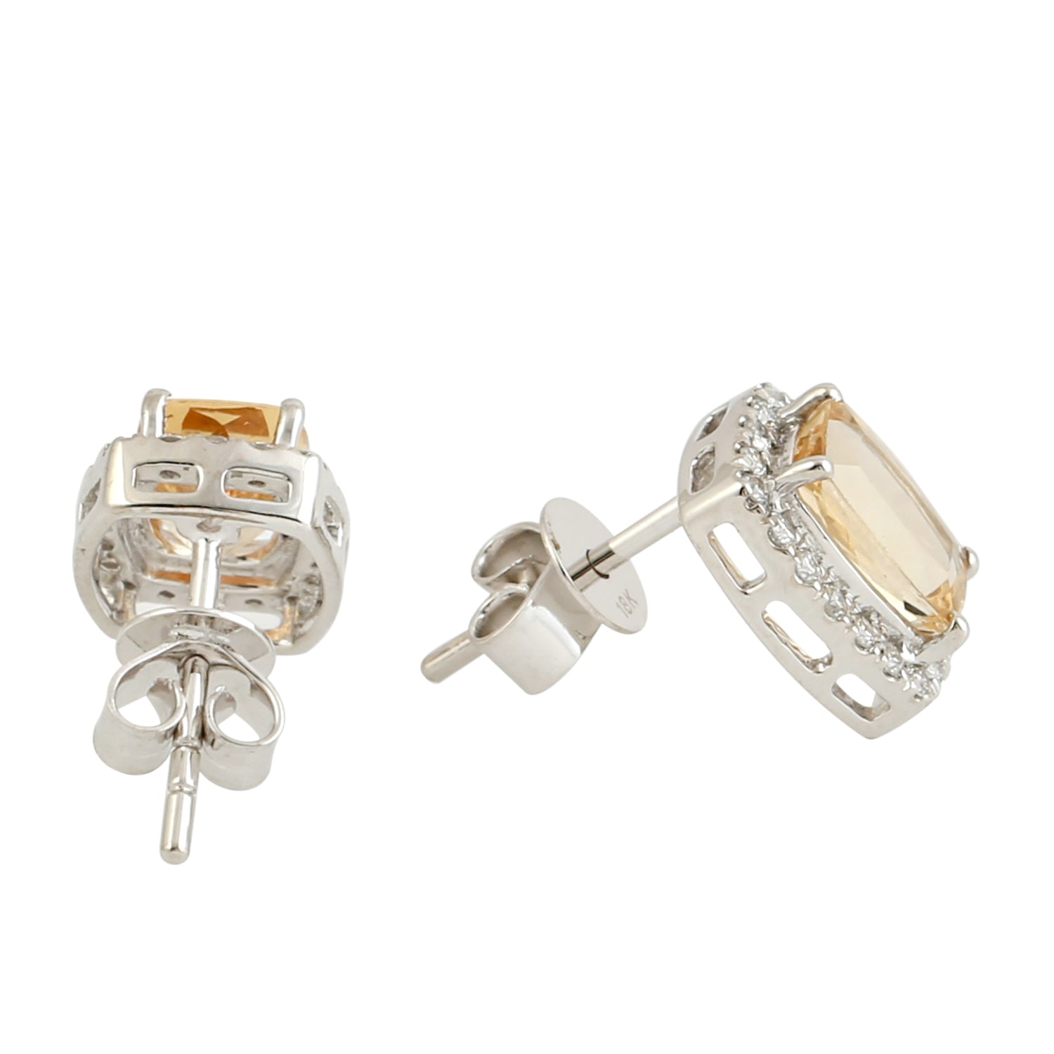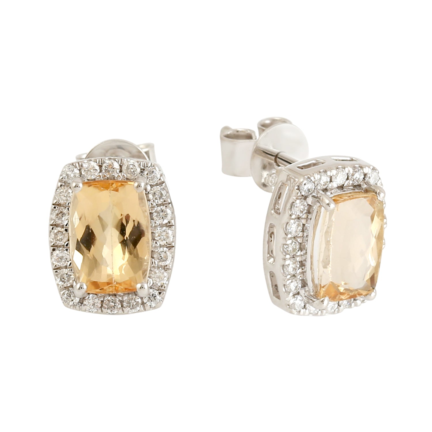 Topaz Imperial November Birthstone Pave Diamond Stud Earrings In White Gold