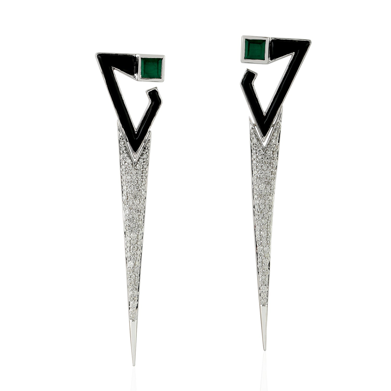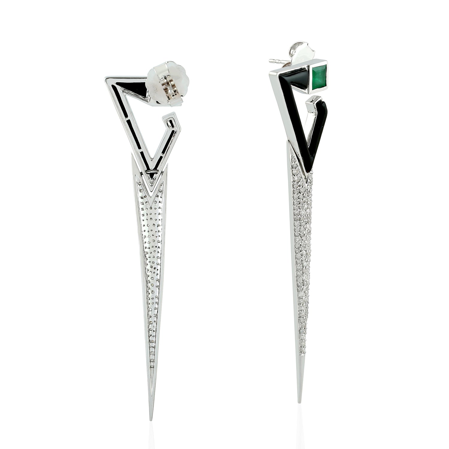 Onyx Square Emerald Micro Pave Diamond Chandelier Earrings In White Gold