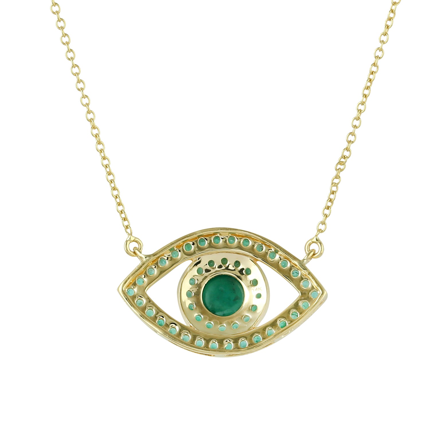 14K Yellow Gold Pave Emerald Gemstone Evil Eye Choker Necklace