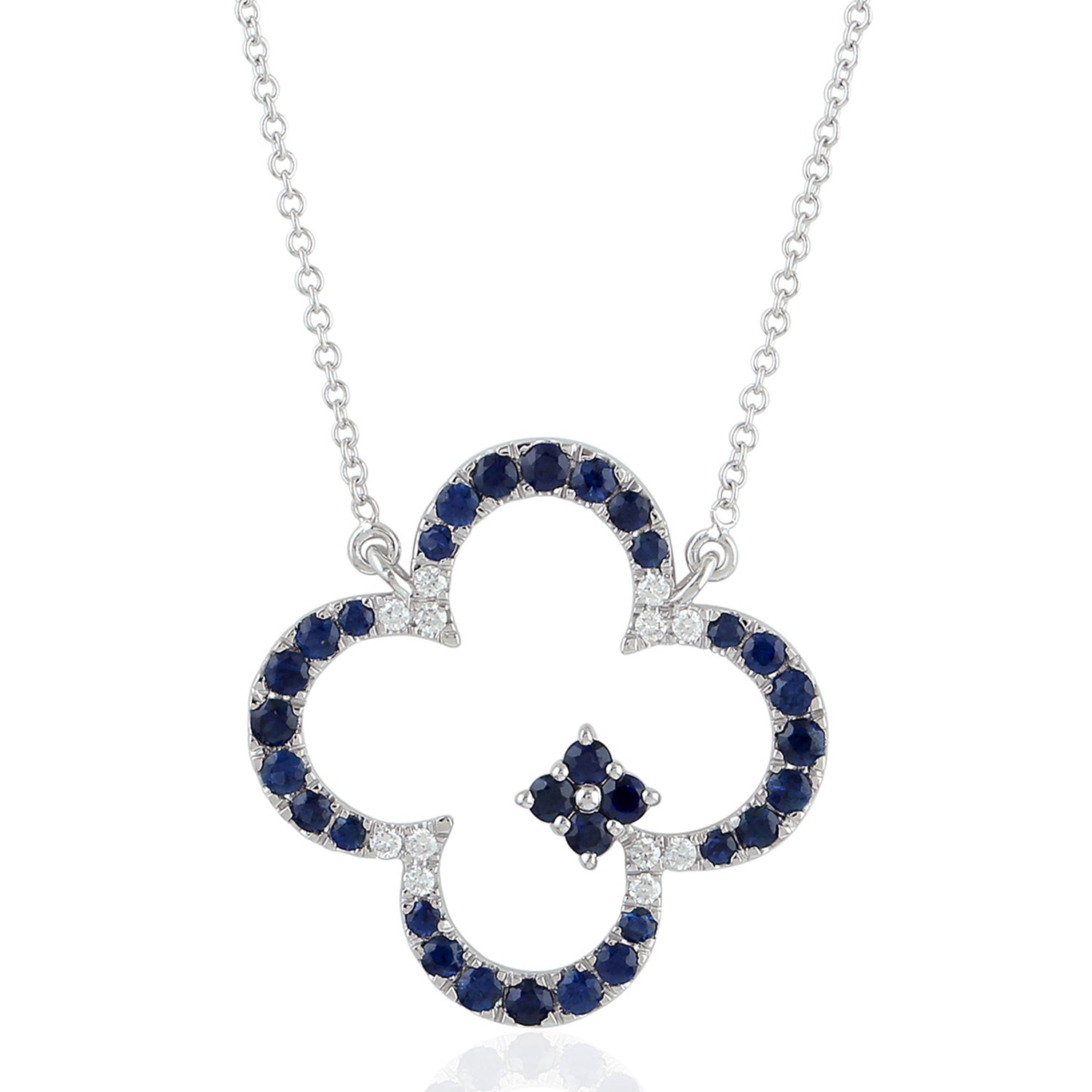 Blue Sapphire Pave Diamond Clover Choker Necklace In White Gold