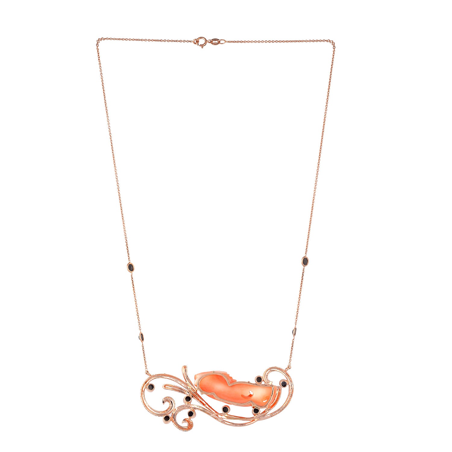 Hand Carved Coral Fish Pave Diamond Designer Choker Necklace In 18k Rose Gold