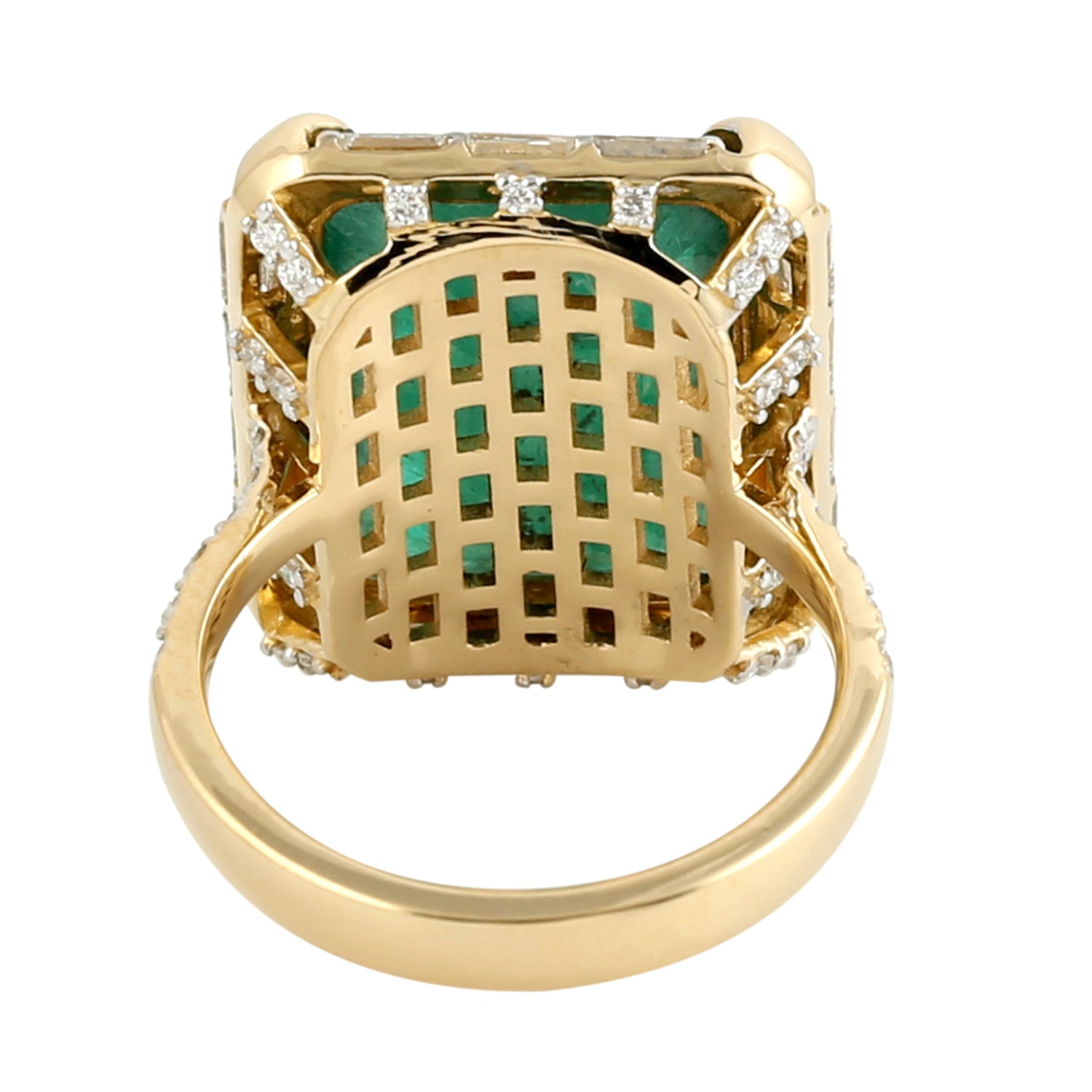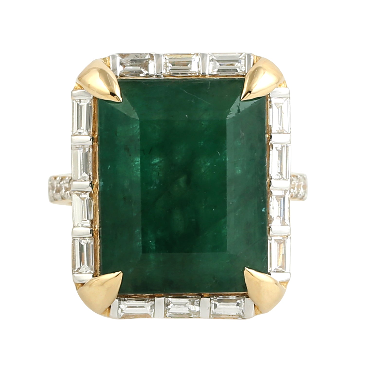 Baguette Cut Diamond Emerald Cut Emerald Gemstone In Gold Cocktail Ring