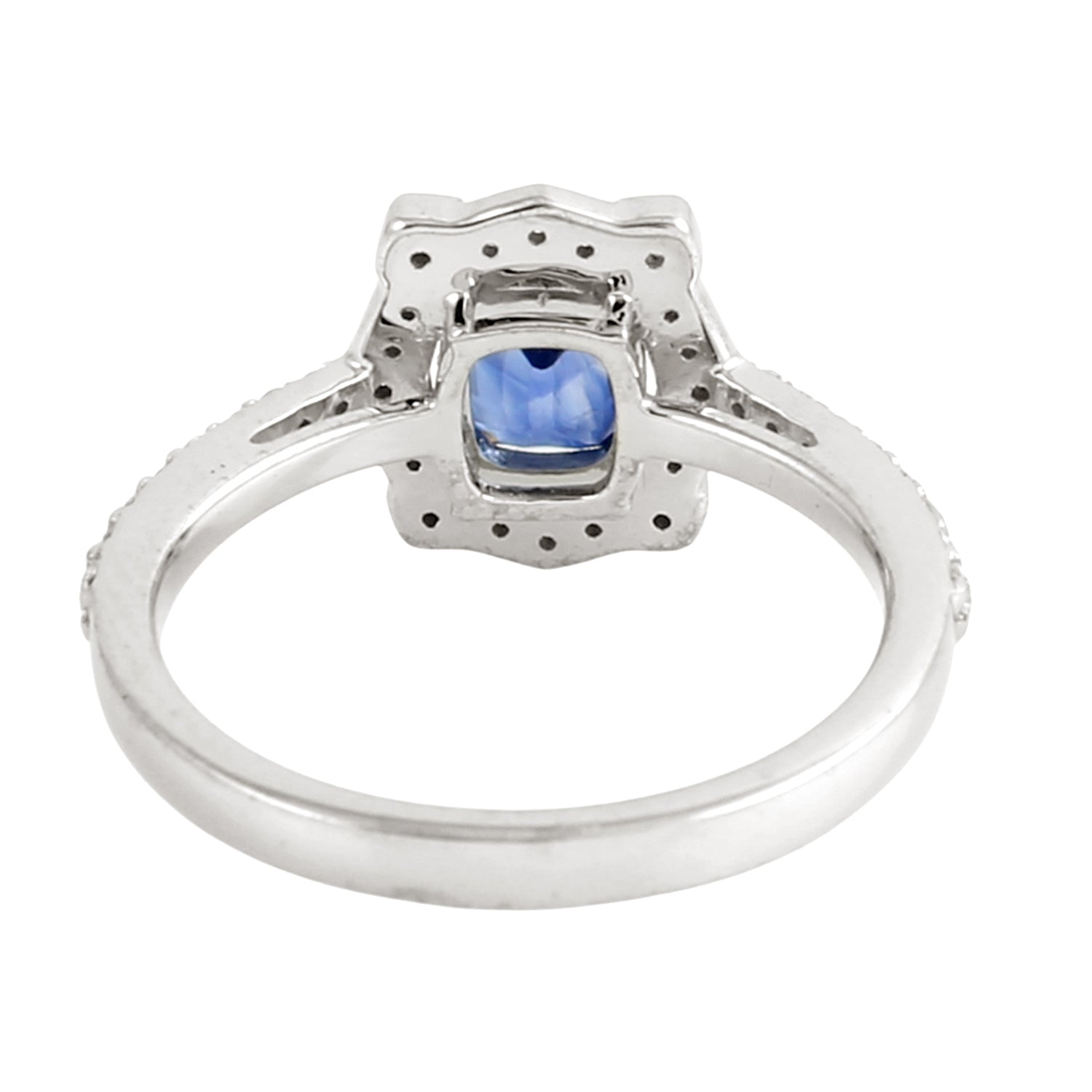 Blue Sapphire Gemstone Pave Diamond Cocktail Ring in 14K White Gold