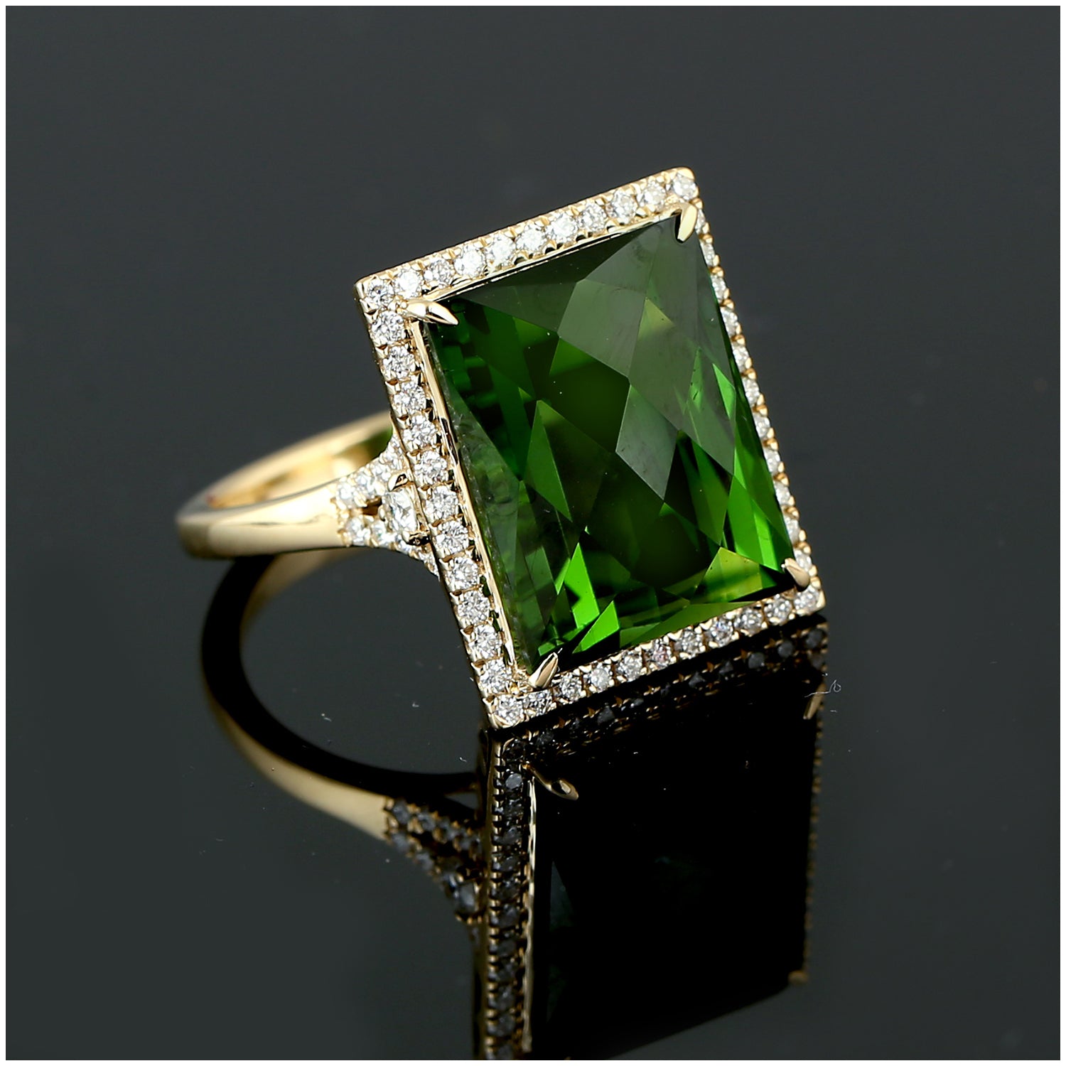 Square Green Tourmaline Pave Diamond Cocktail Ring in 18k Yellow Gold