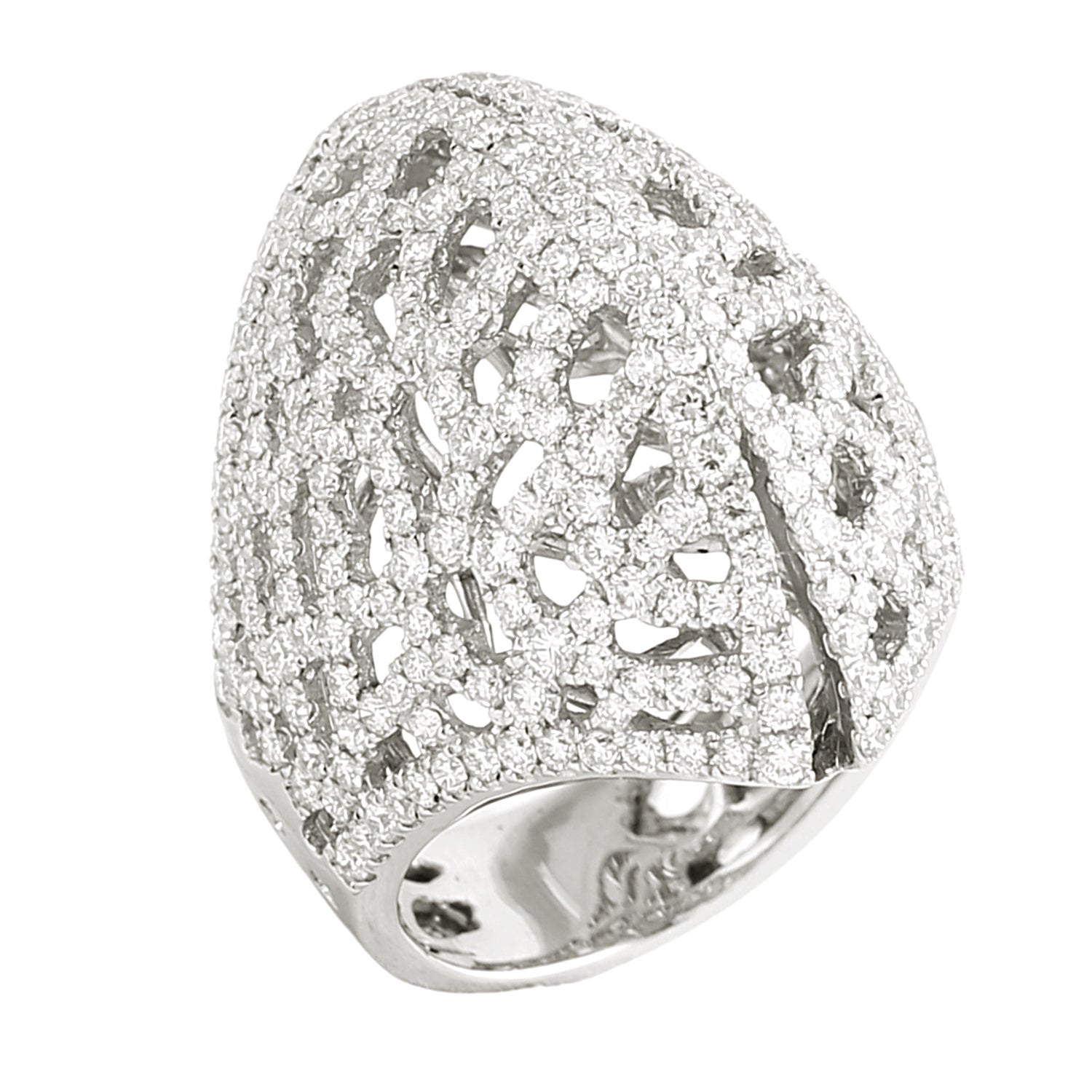 Luxury Long Diamond Cocktail Ring in White Gold – Micro Pave Design
