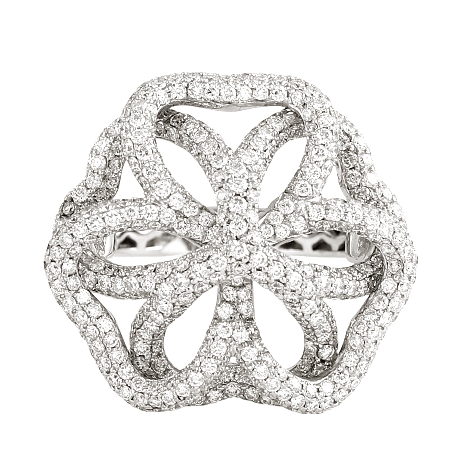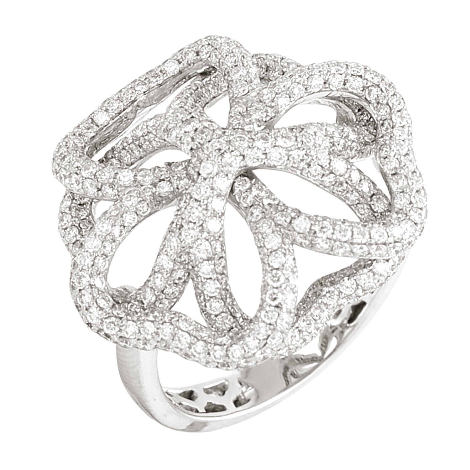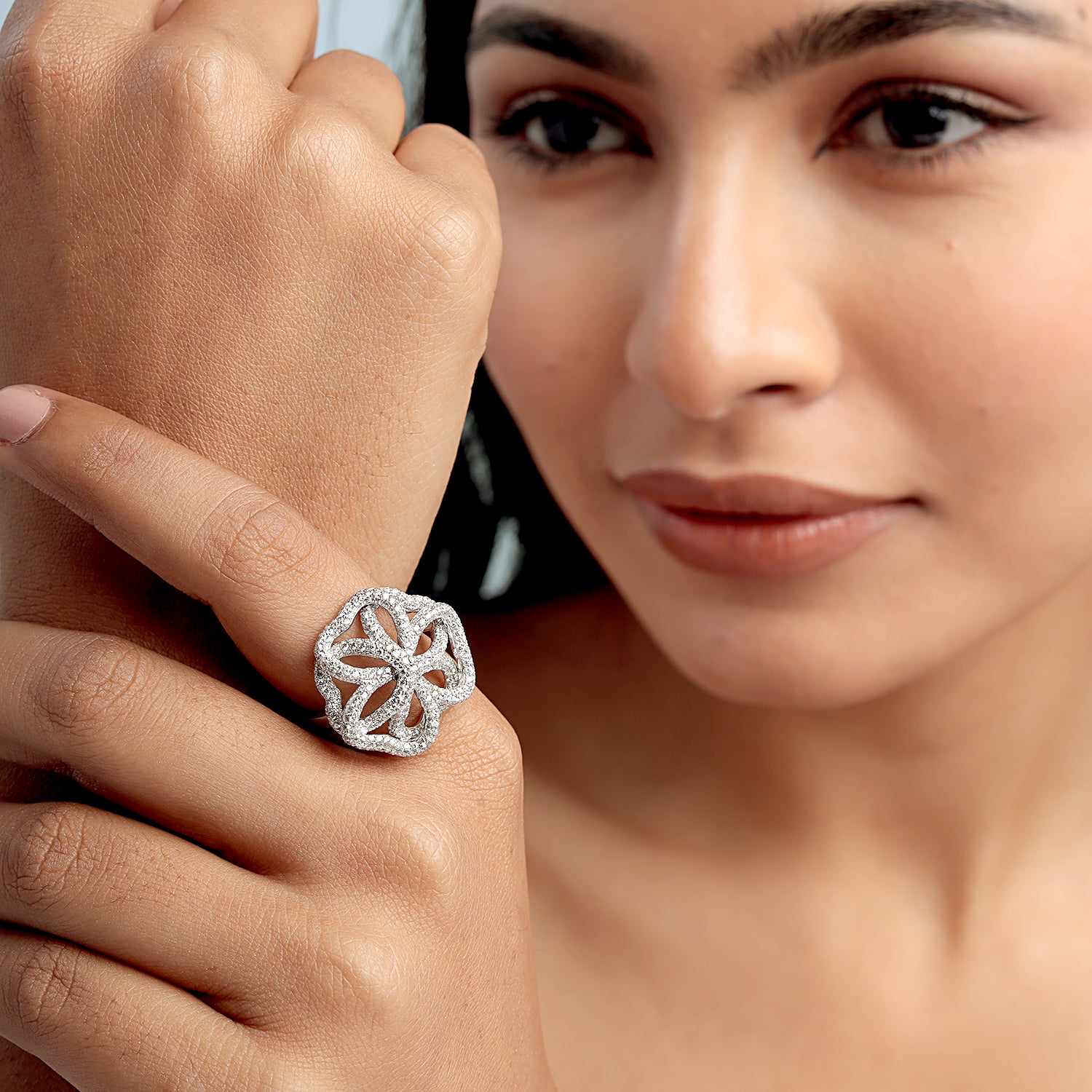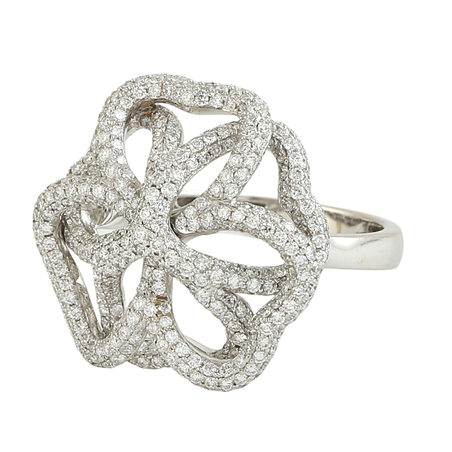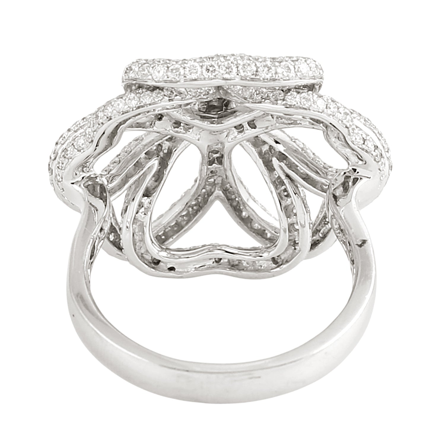 Micro Pave Diamond Floral Ring in 18K White Gold – Fine Jewelry Gift