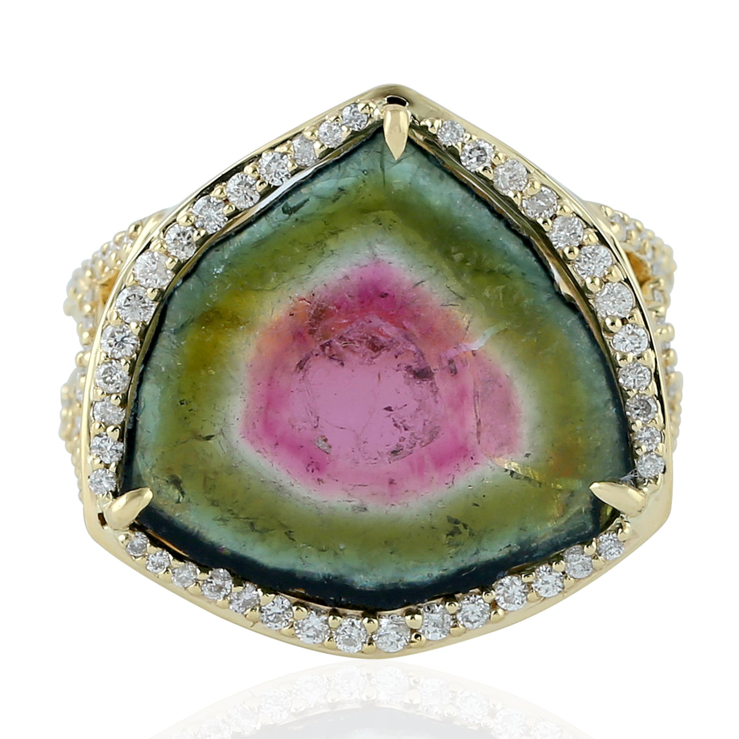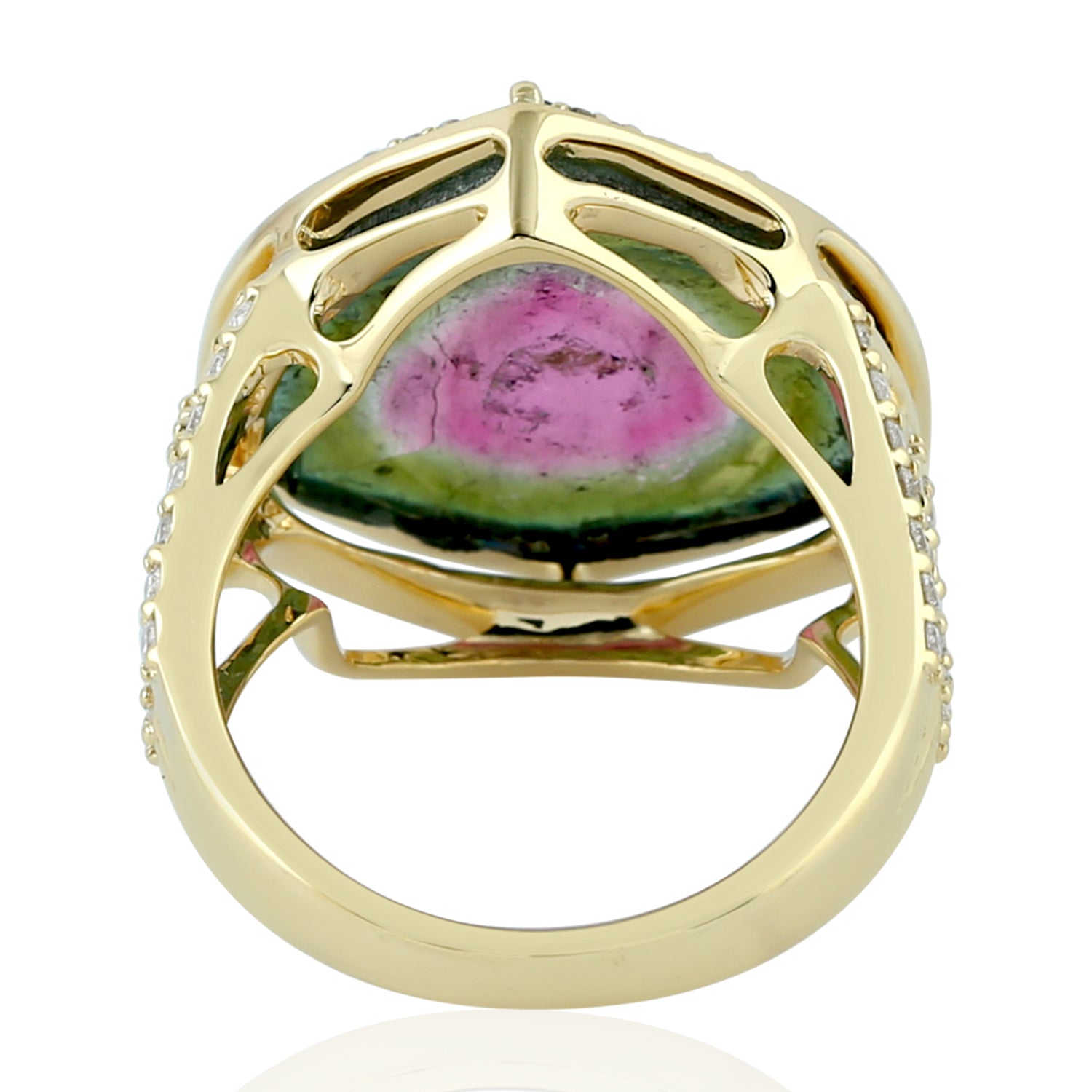 Prong Set Tourmaline Melon Pave Diamond Cocktail Ring In 18k Yellow Gold