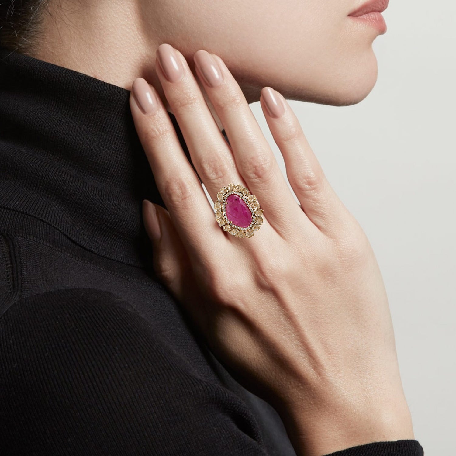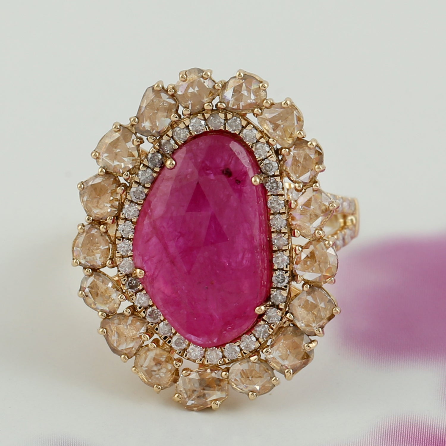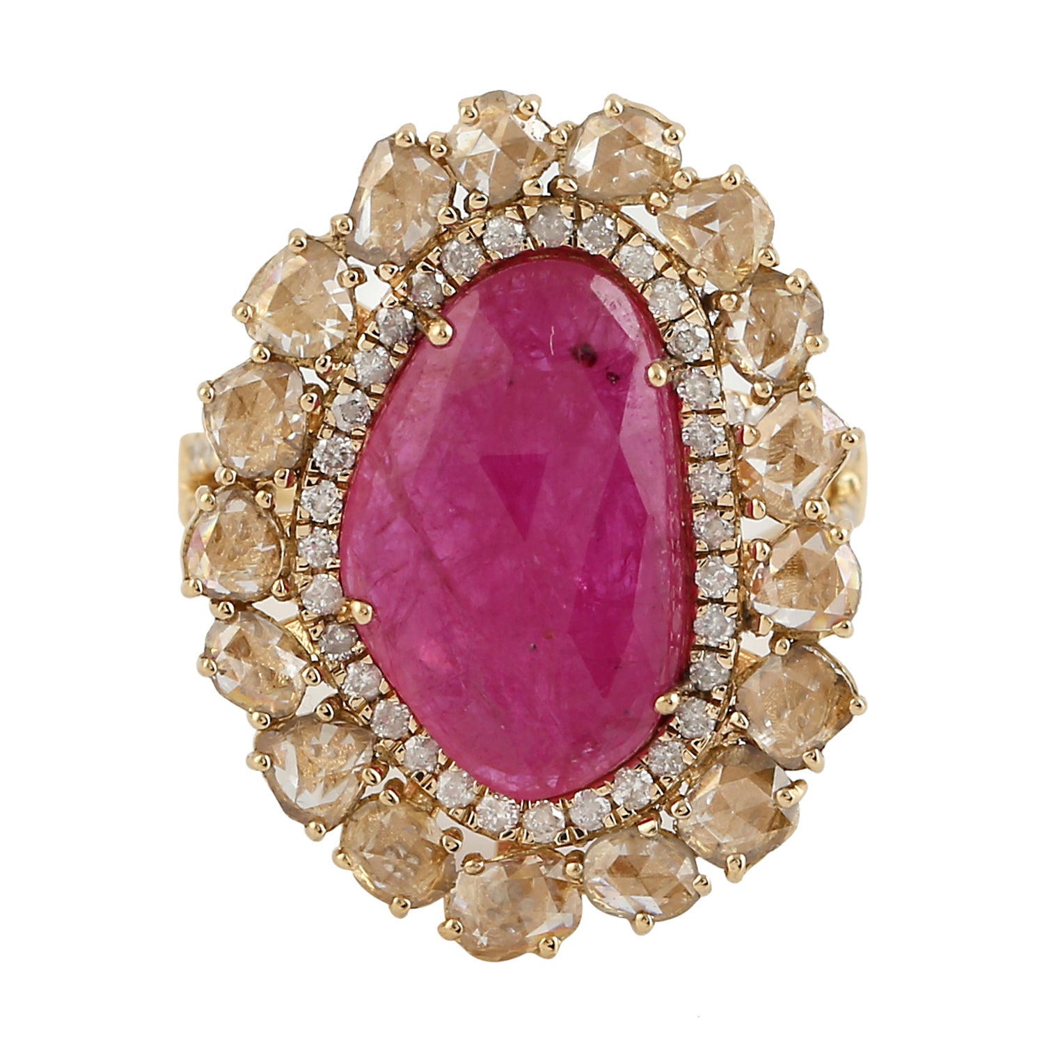 Oval Cut Ruby Prong Ice Diamond Cocktail Ring In Yellow Gold Gift For Her