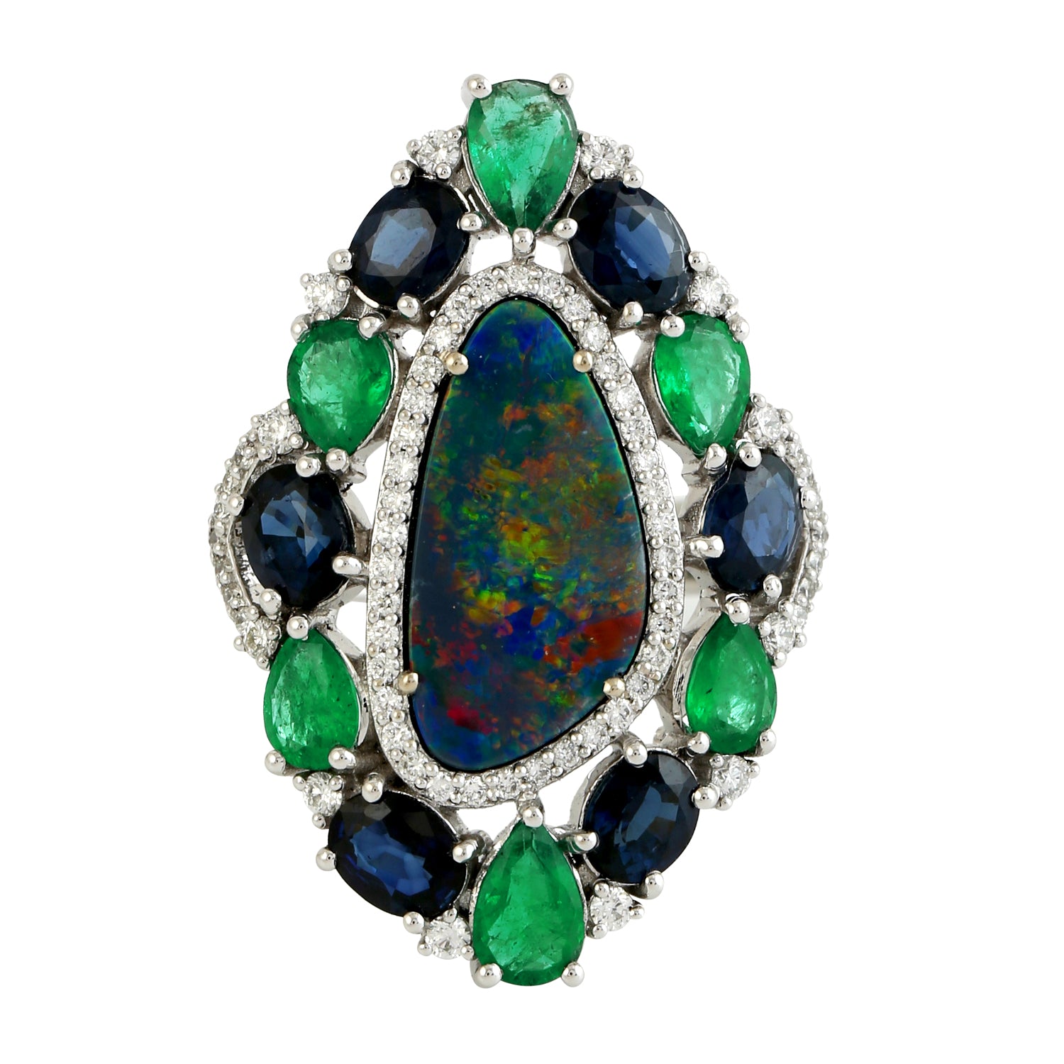 Opal Doublet Pear Emerald Oval Blue Sapphire Pave Diamond White Gold Ring