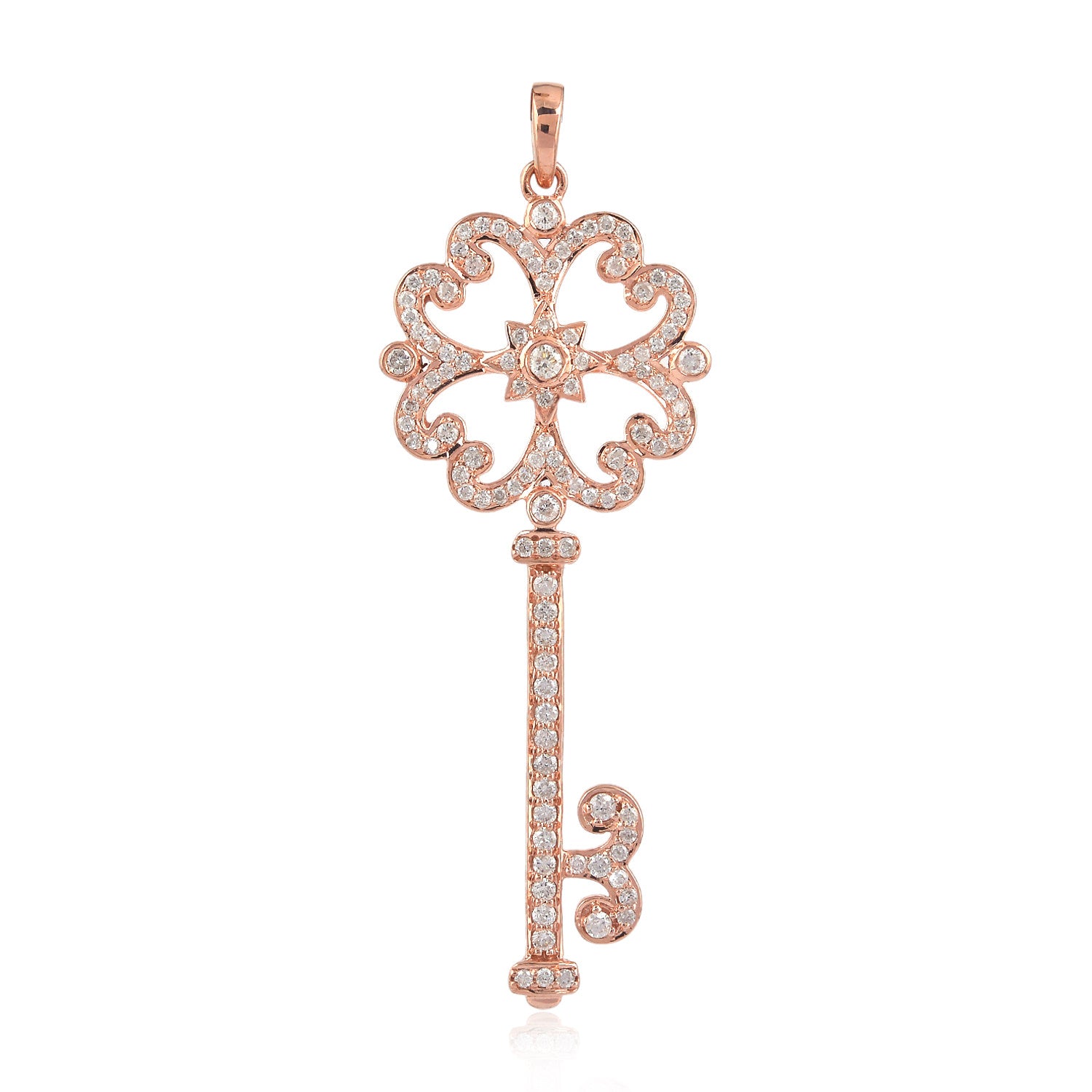 Quartz Heart Key Pendant in 18K Rose Gold with Pave Diamonds