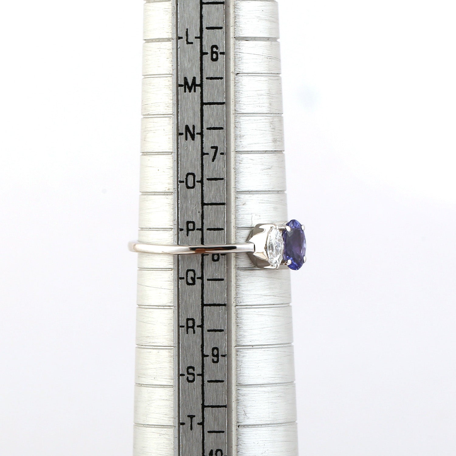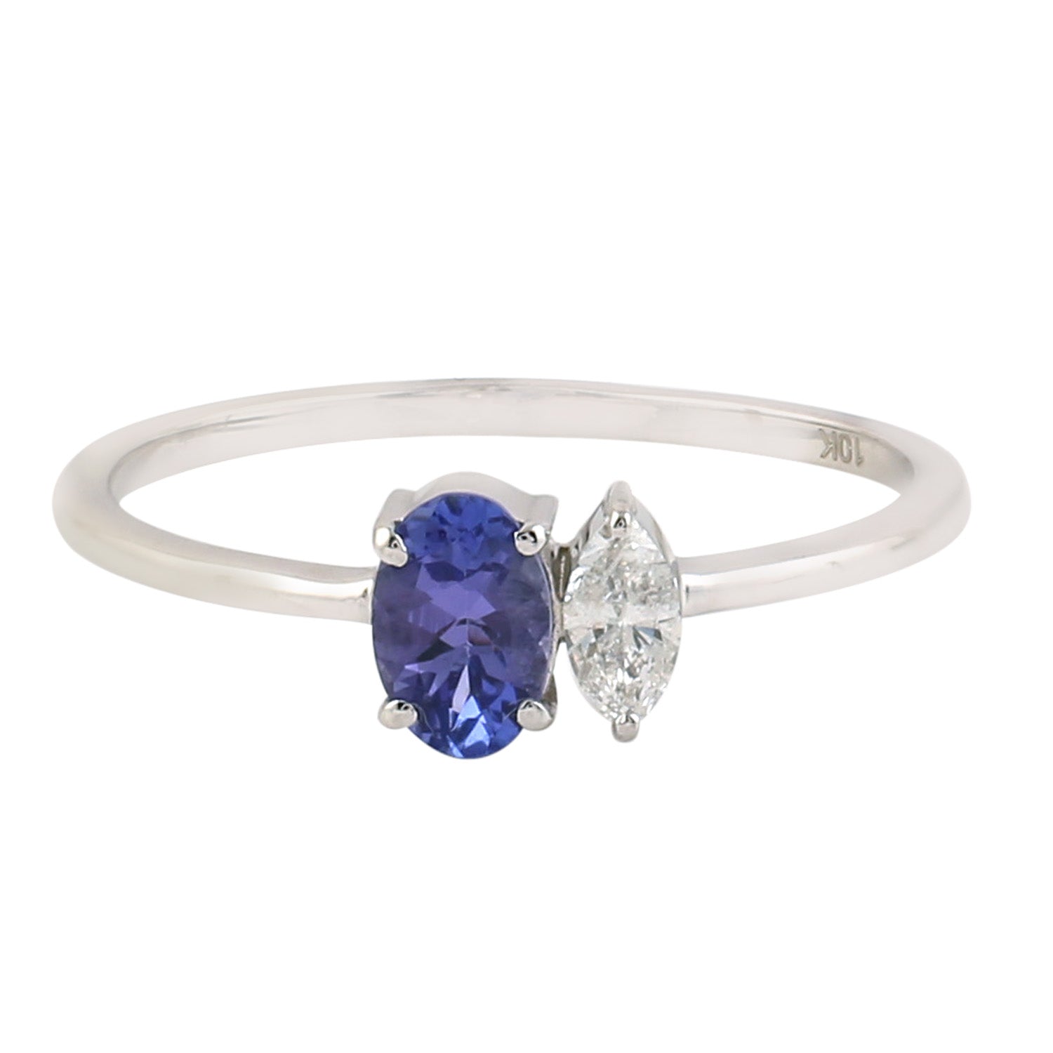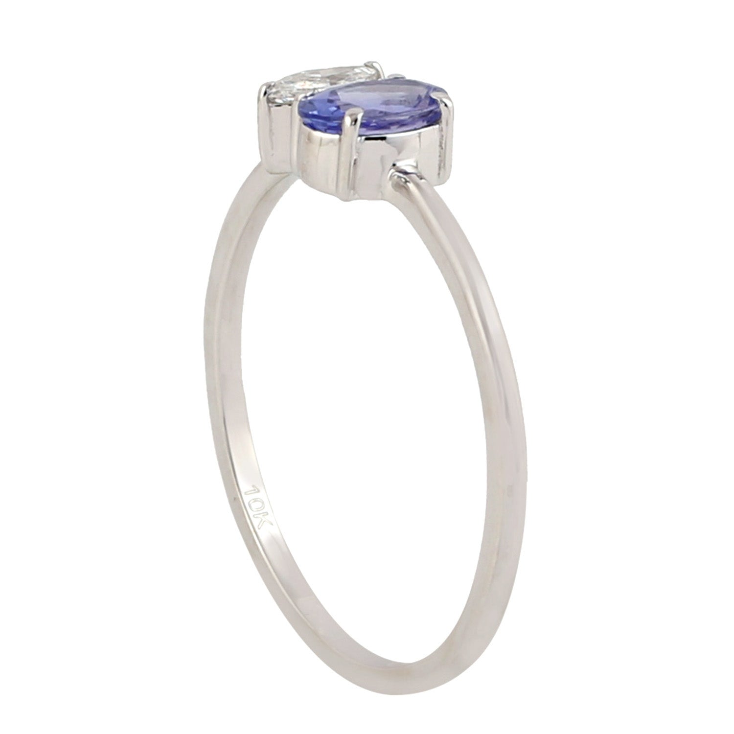 Oval Cut Tanzanite Rose Cut Diamond Band Ring In 10k White Gold