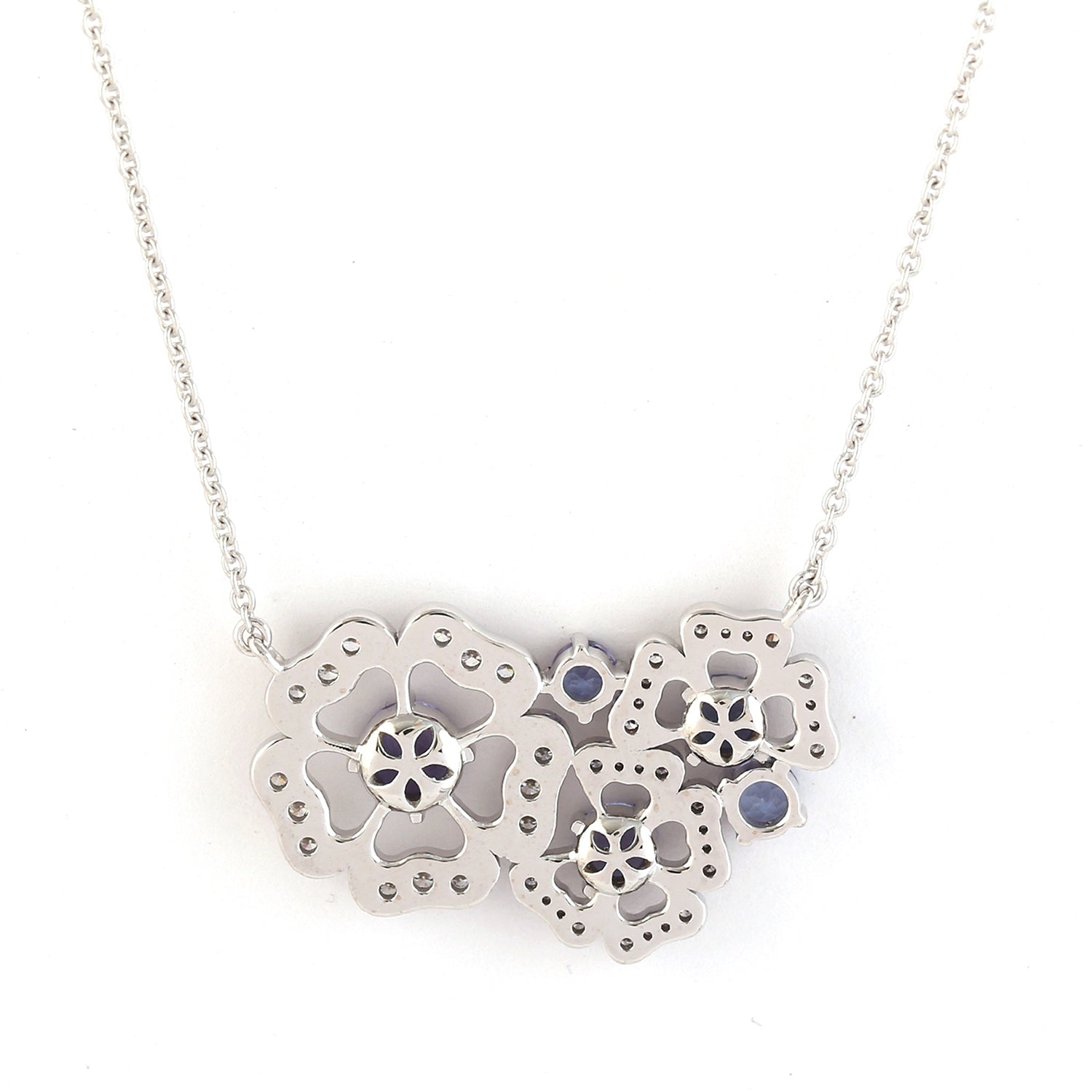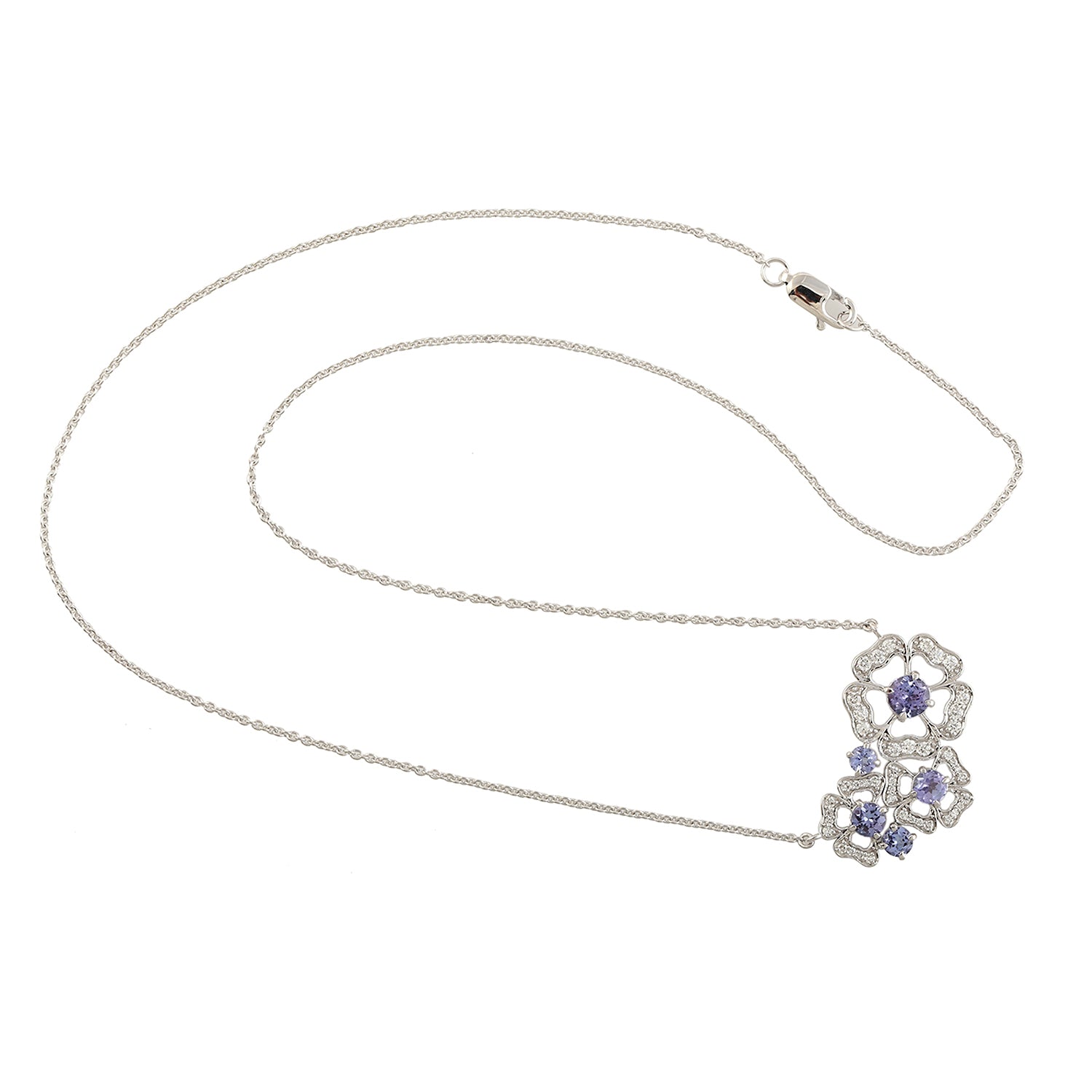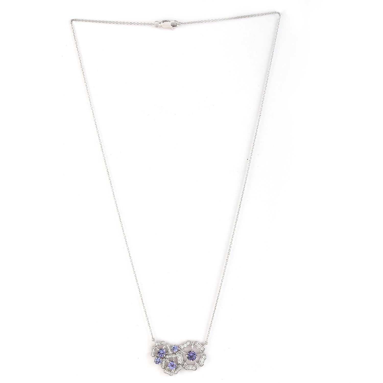 Tanzanite Pave Diamond Clover Design Choker Necklace In 18k White Gold