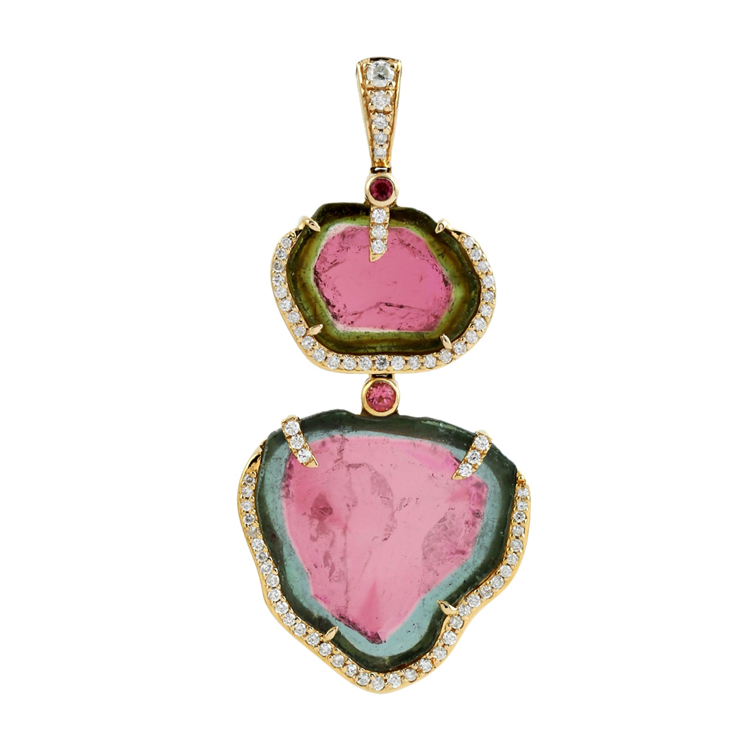 Tourmaline Melon Pink Tourmaline Pave Diamond Designer Pendant In Yellow Gold