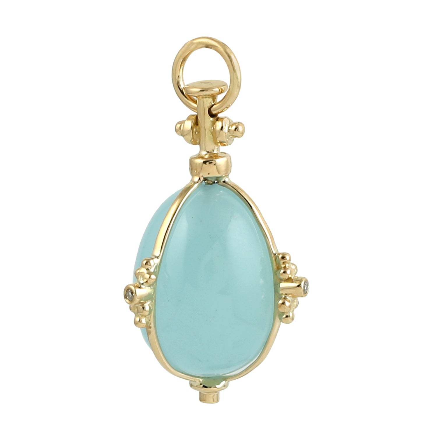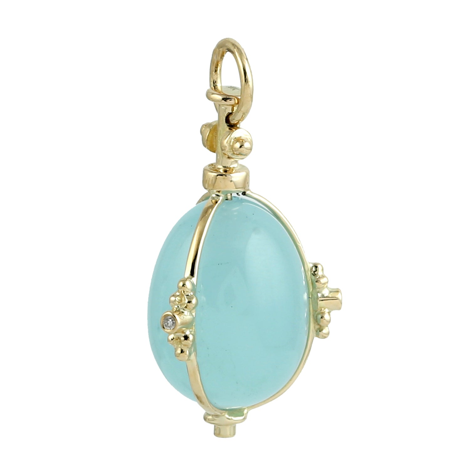 Egg Cut Aquamarine Bezel Diamond Designer Pendant In 18K Yellow Gold