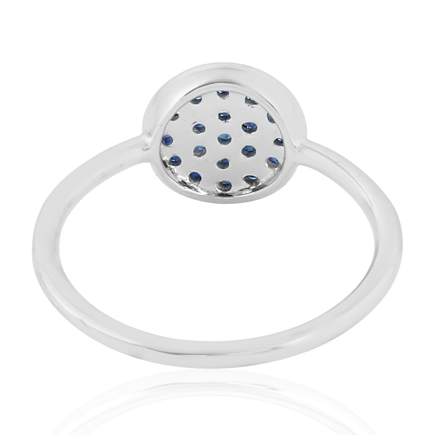 Pave Blue Sapphire Disc Ring in 18K White Gold – Handmade Statement Jewelry
