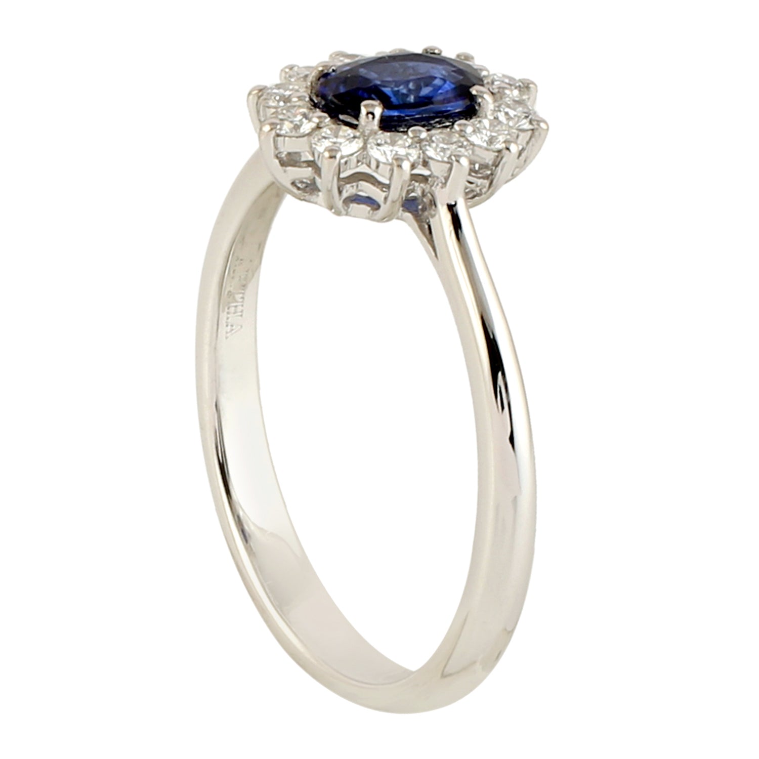 Oval Blue Sapphire Pave Diamond Designer Ring for Her in 18k White Gold