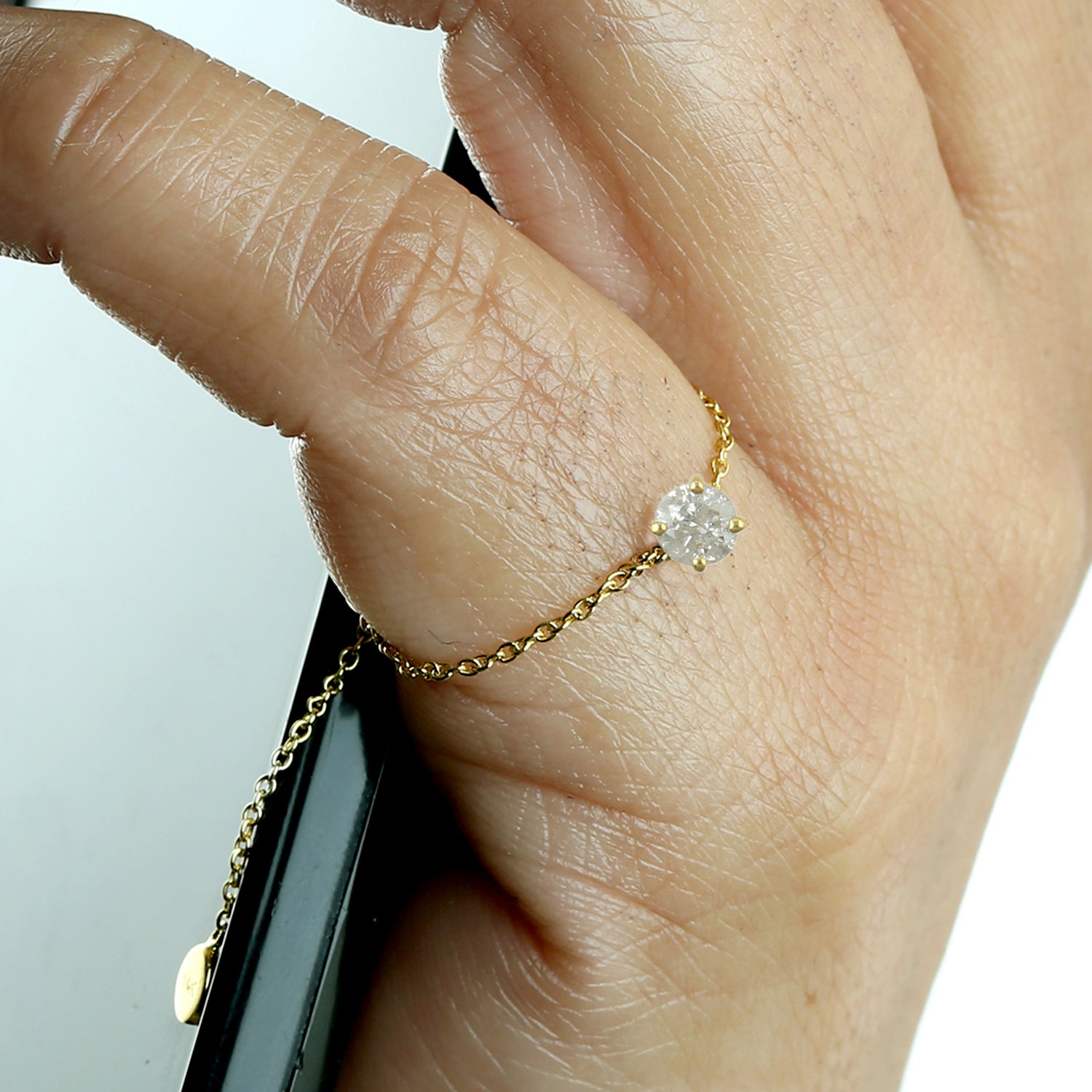 • Natural Diamond Chain Design Delicate Ring In 14k Yellow Gold