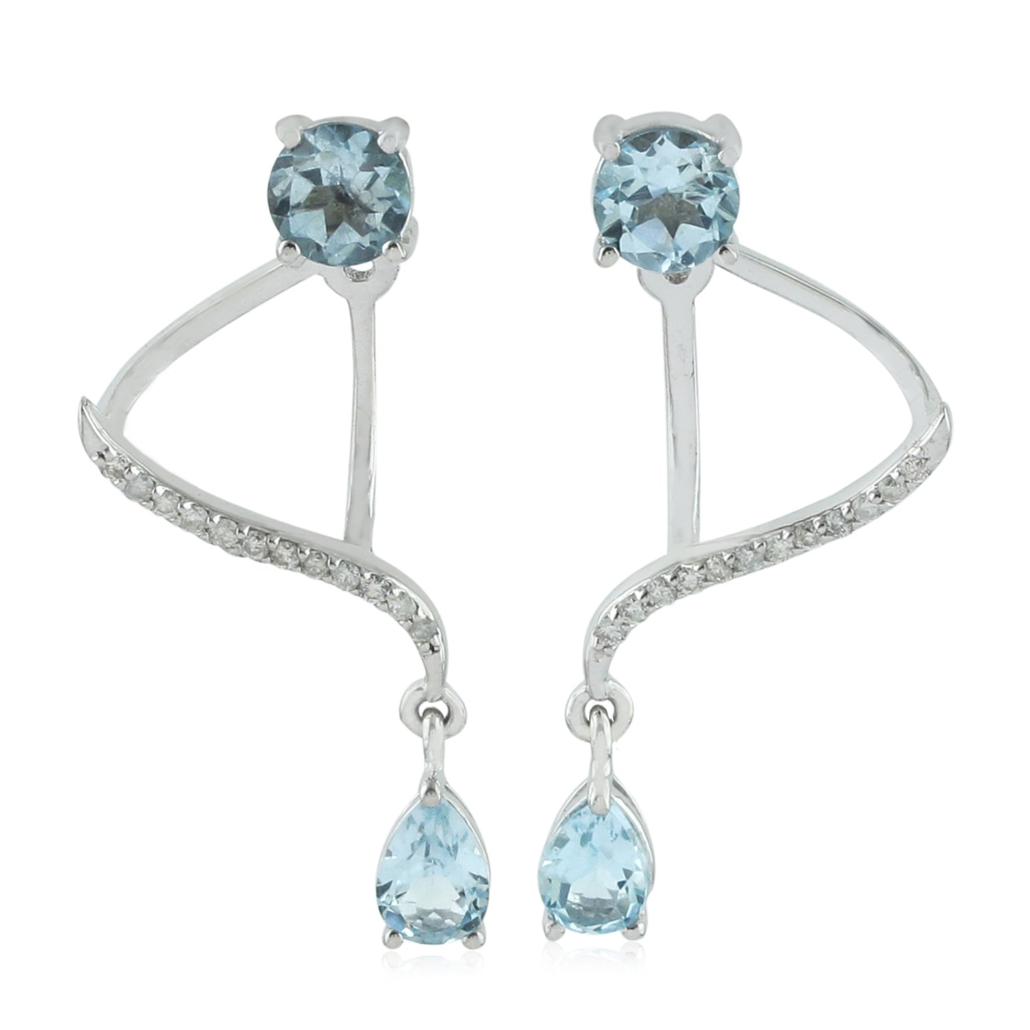 Blue Topaz Gemstone Pave Diamond Ear Jacket Earrings In 14K White Gold