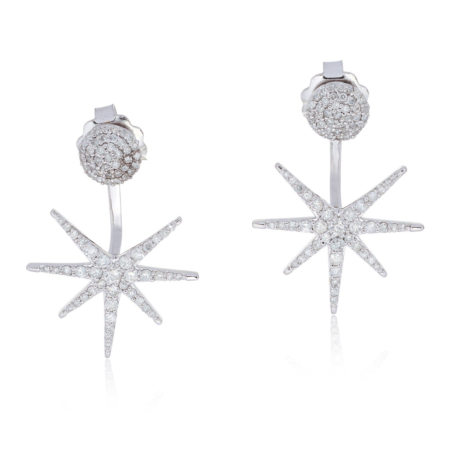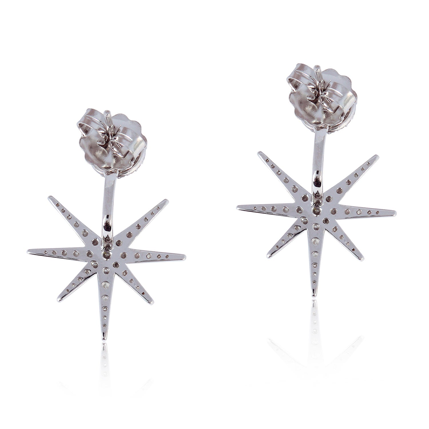 • Diamond Starburst Ear Jacket Earrings in 18K White Gold