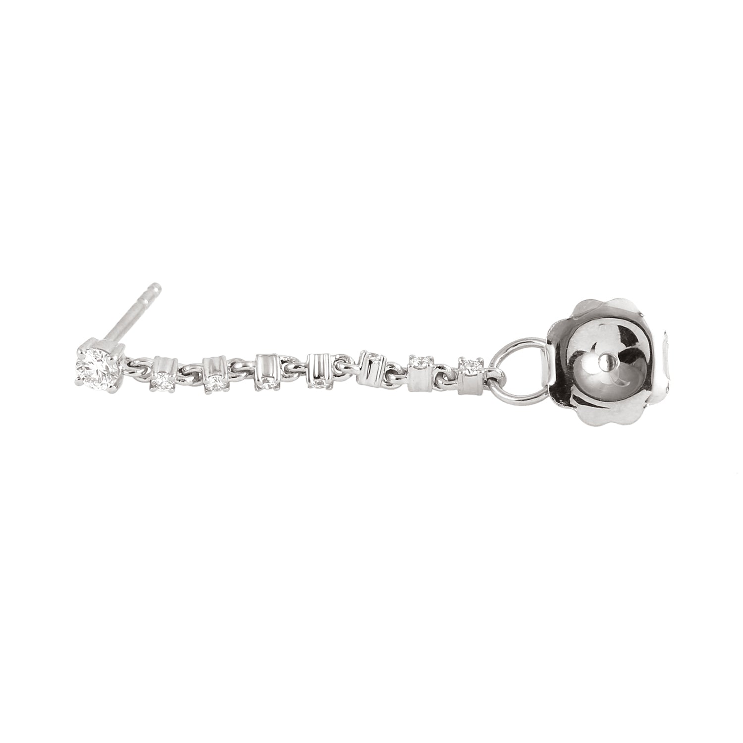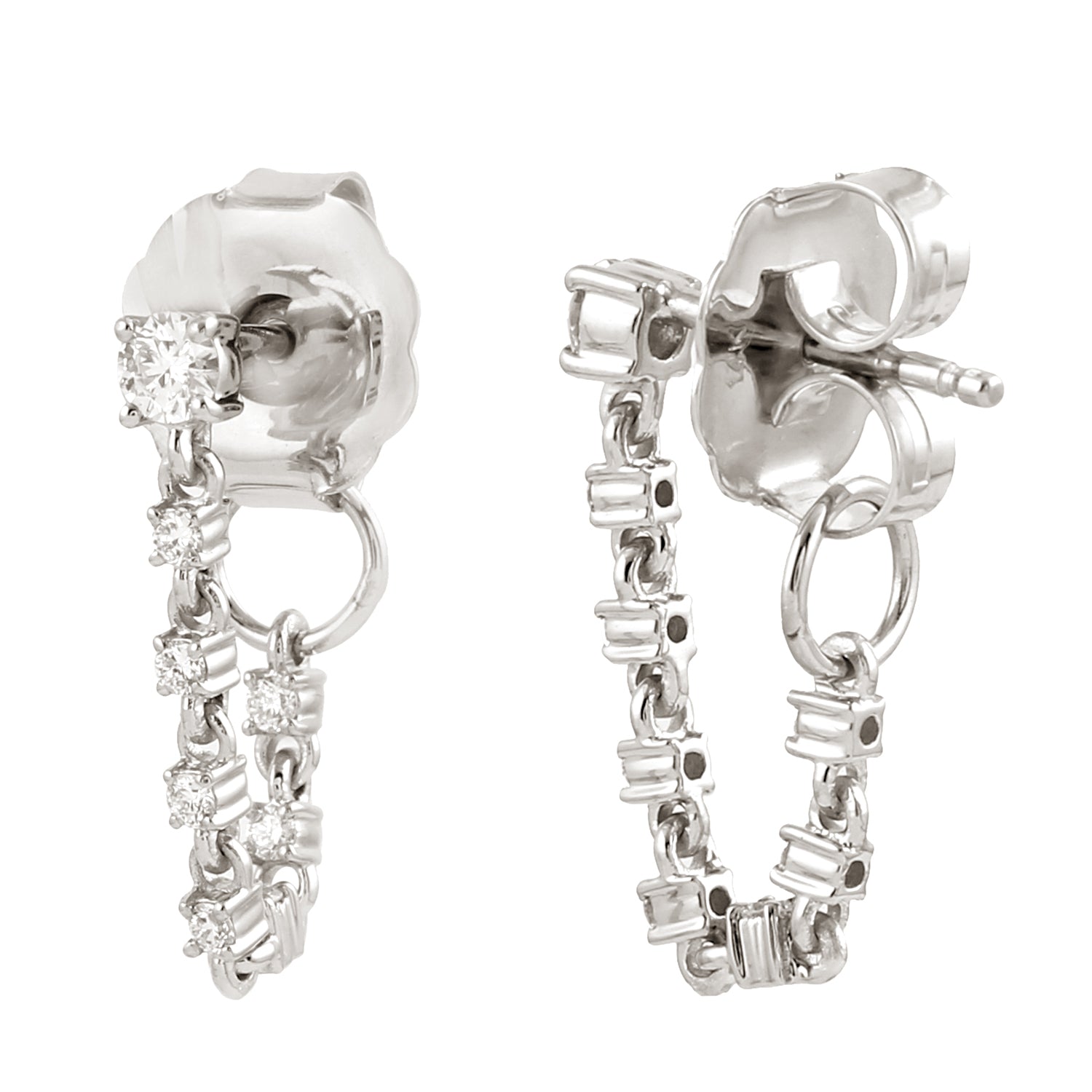 14K White Gold Pave Diamond Chain Ear Threader Earrings For Birthday Gifts