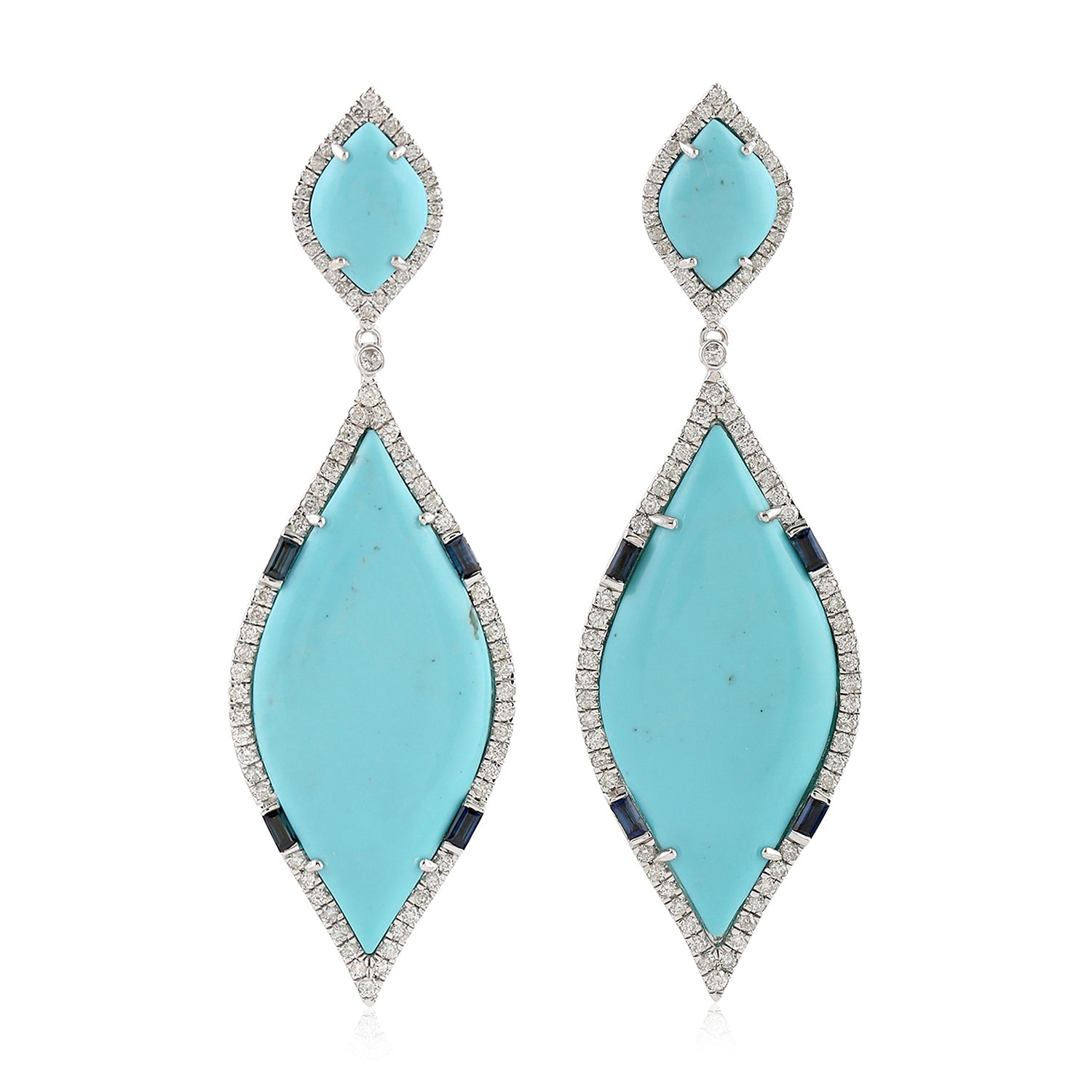 Baguette Blue Sapphire Turquoise Gemstone Pave Diamond Marquise Dangler In White Gold