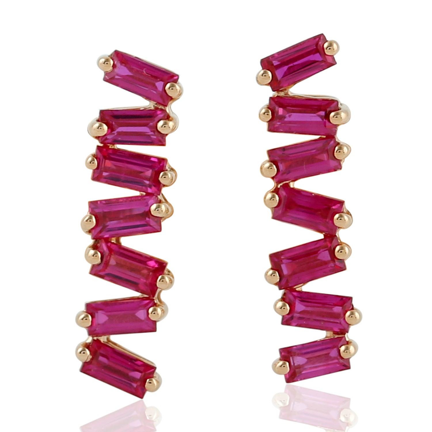 • Baguette Cut Ruby Gemstone Minimal Stud Earrings In 18K Rose Gold
