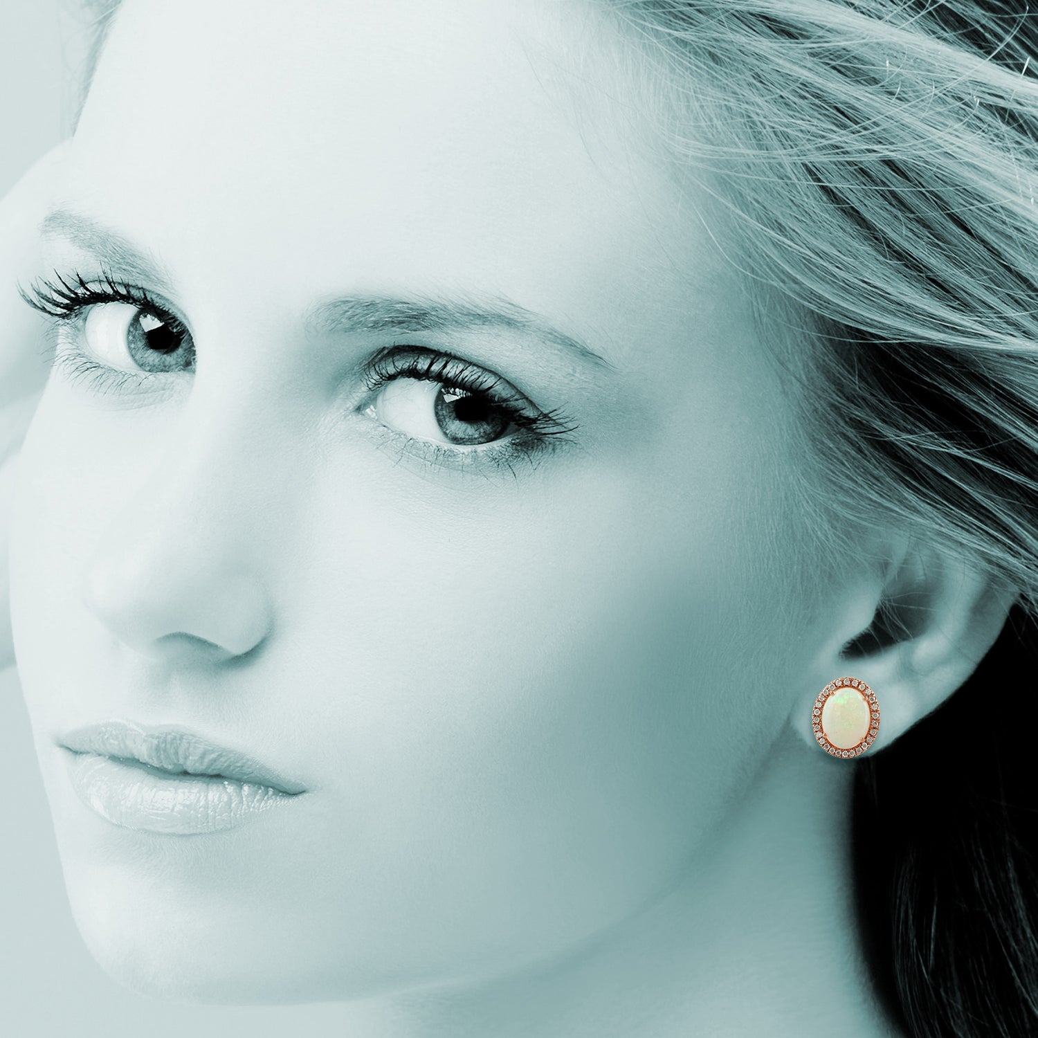 • Oval Opal & Diamond Halo Stud Earrings in 18K Rose Gold