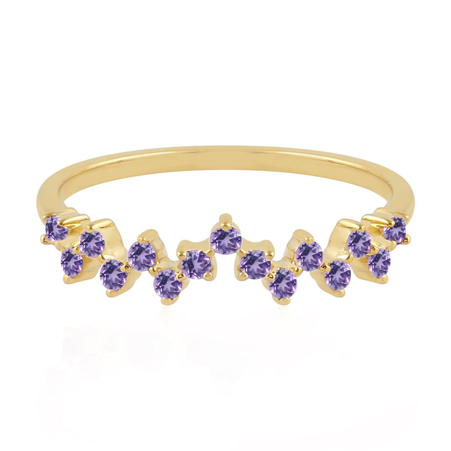 10K Yellow Gold Prong Amethyst Gemstone Designer Ring