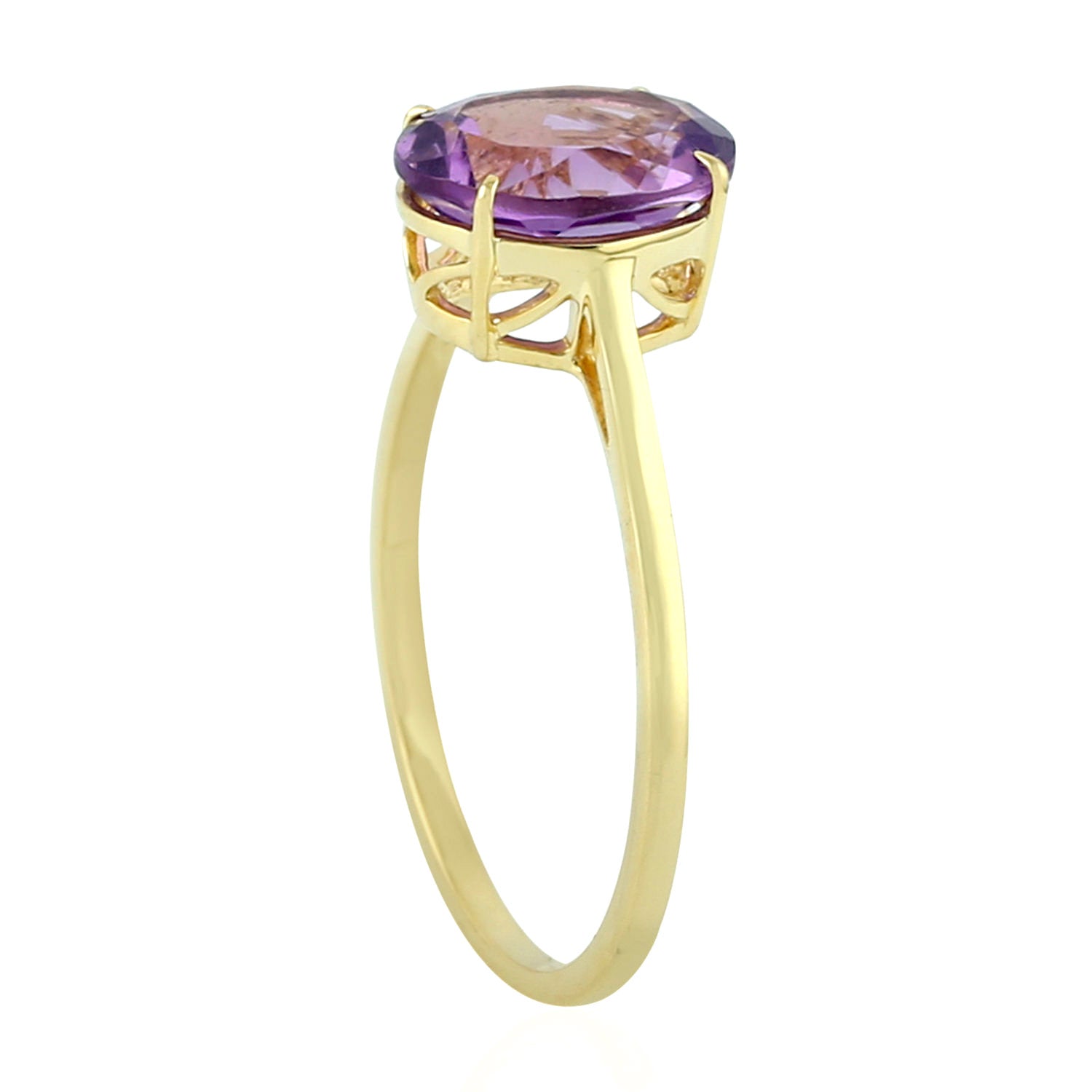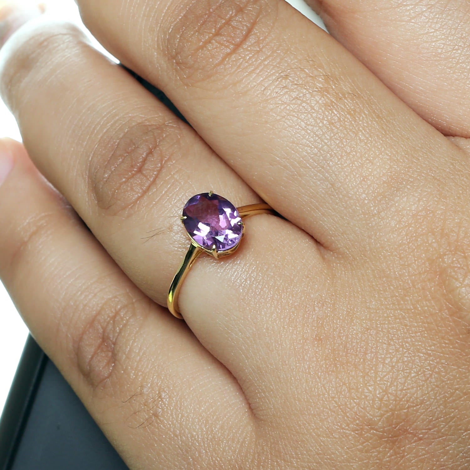14K Yellow Gold Oval Cut Amethyst Gemstone Ring For Women's