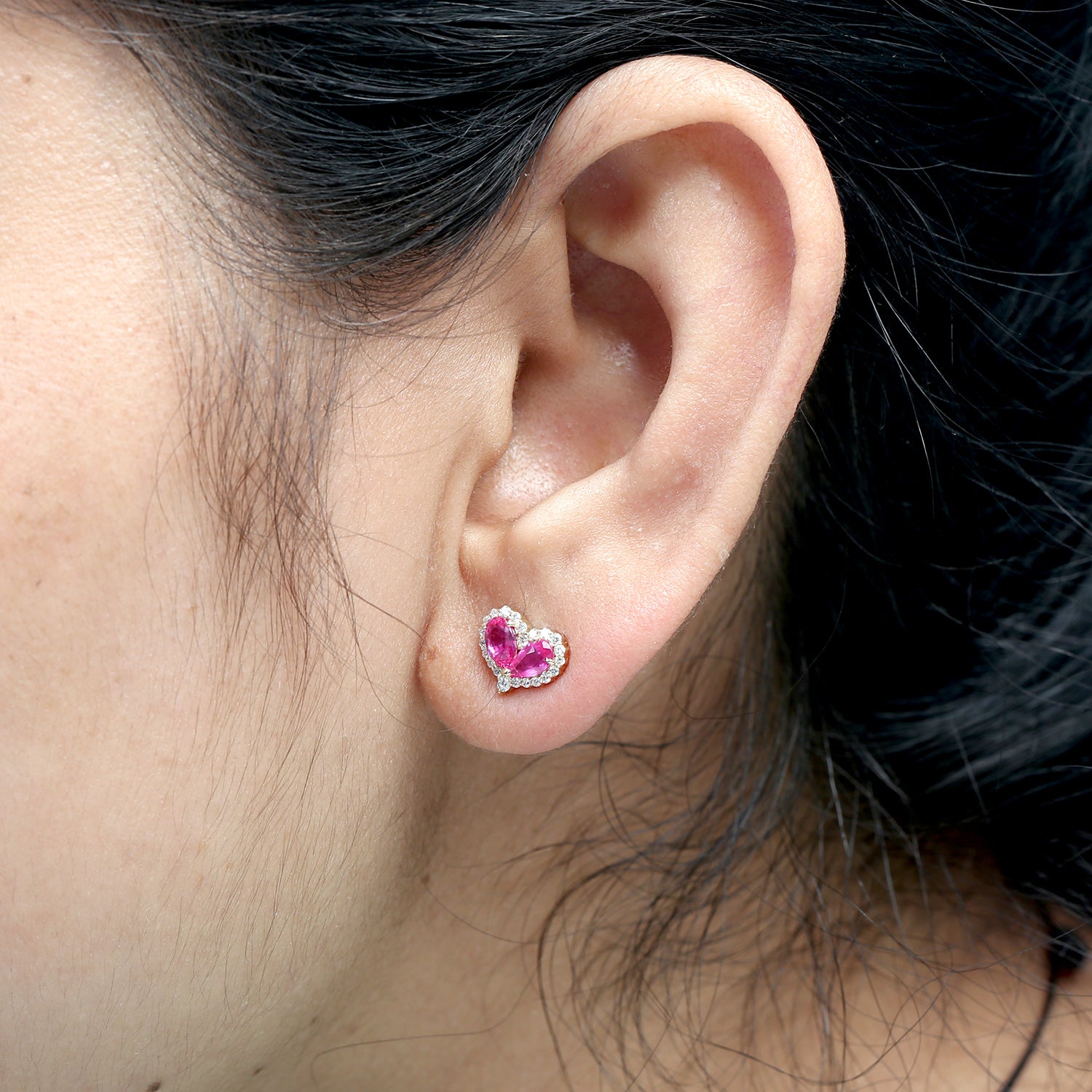 Pear Cut Ruby & Diamond Heart Stud Earrings in 18K Yellow Gold